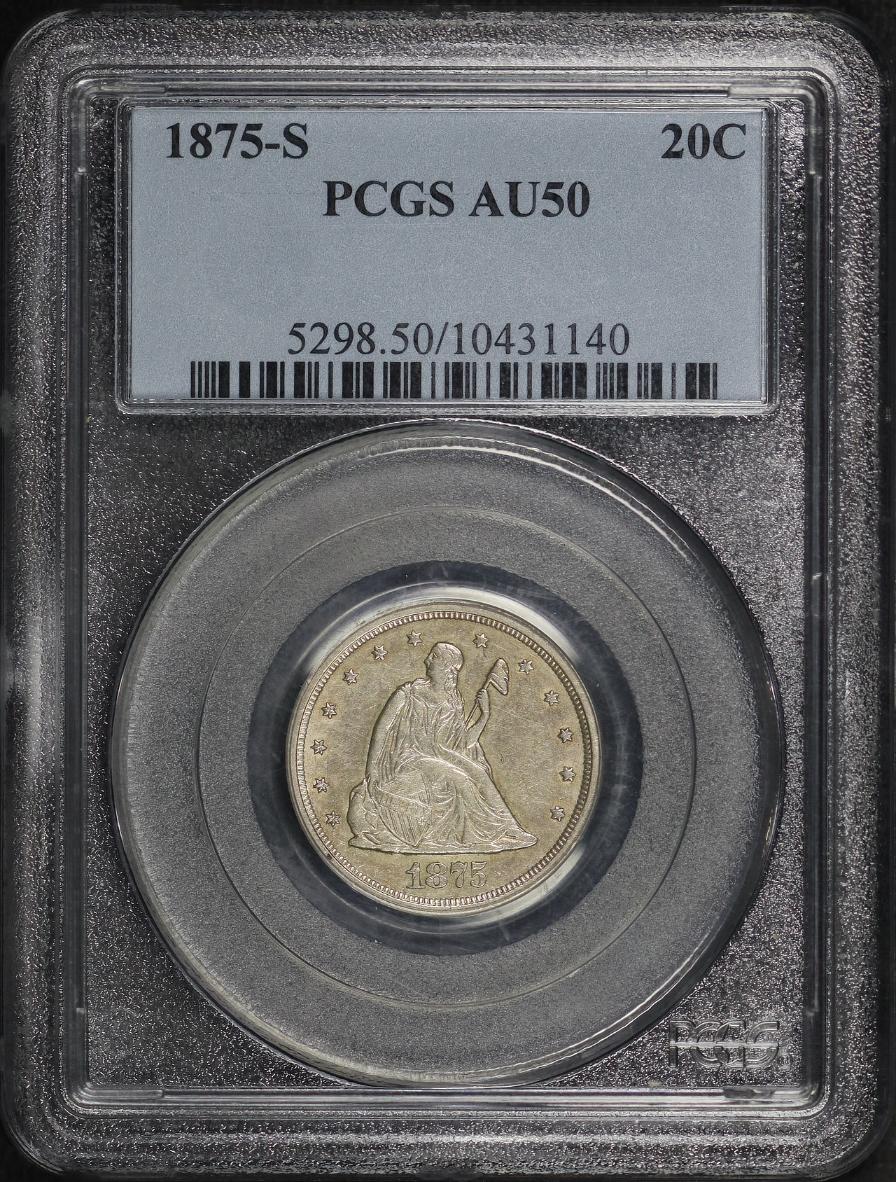 1875-S Twenty Cent PCGS AU-50 designed by William Barber.