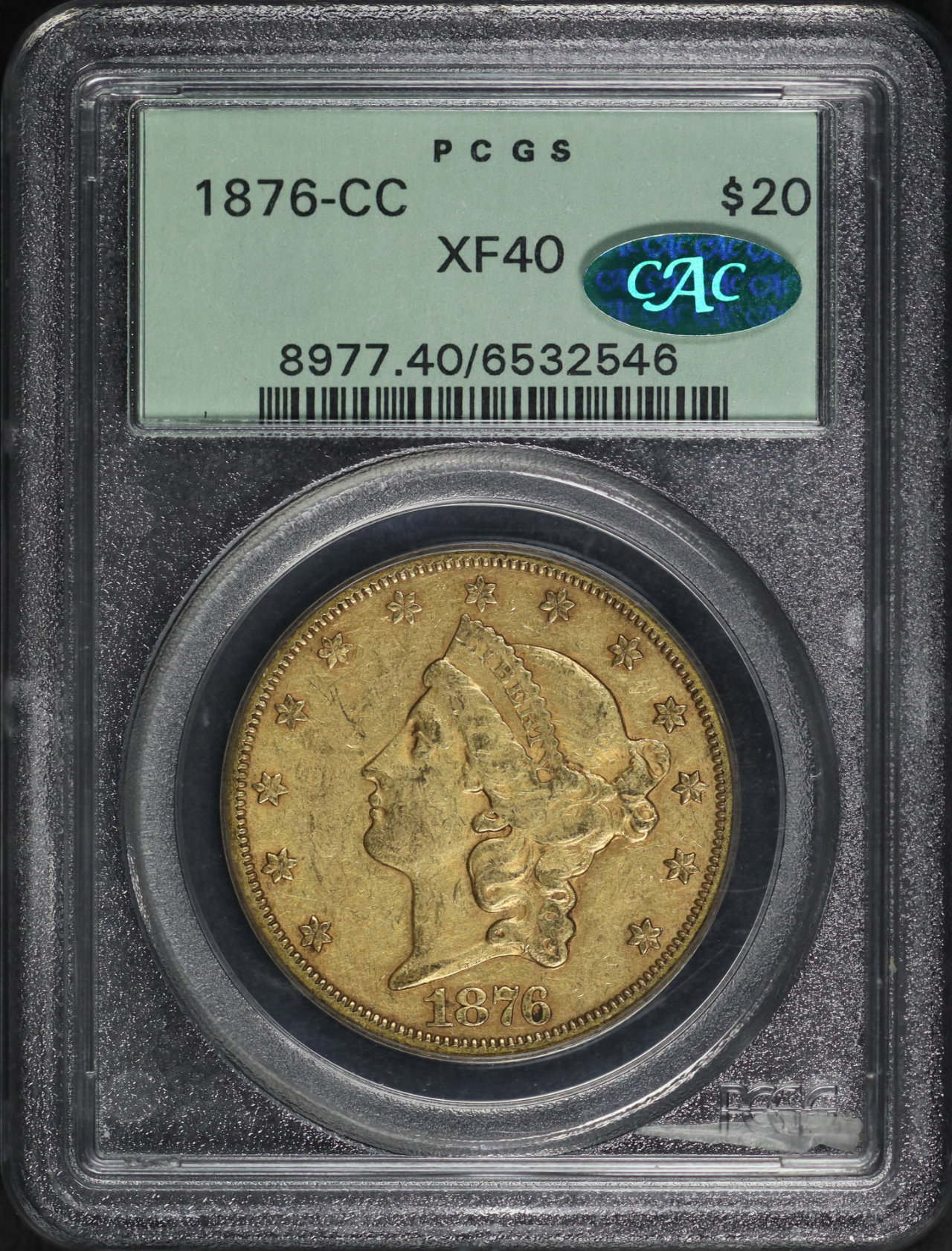 1876-CC Liberty Head $20 PCGS XF-40 CAC Old Green Holder