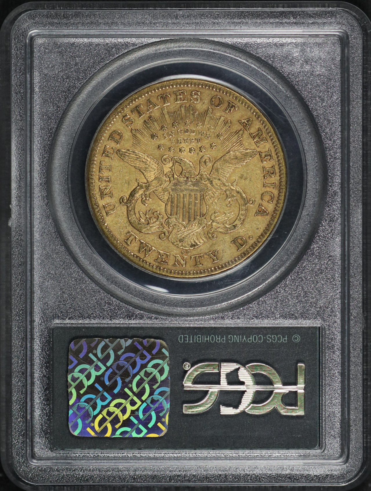 1876-CC Liberty Head $20 PCGS XF-40 CAC Old Green Holder designed by James Barton Longacre.