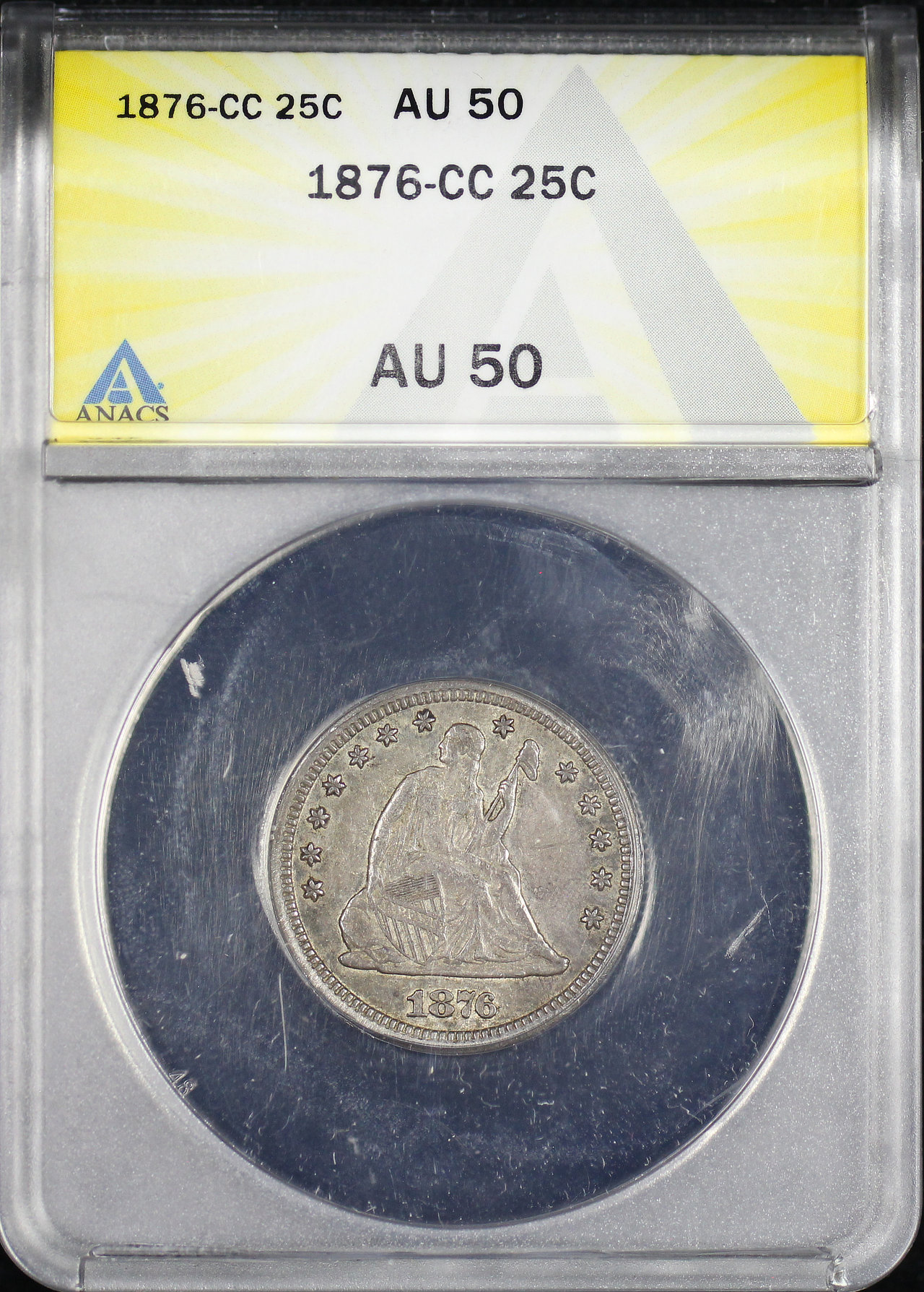 1876-CC Liberty Seated Quarter ANACS AU-50
