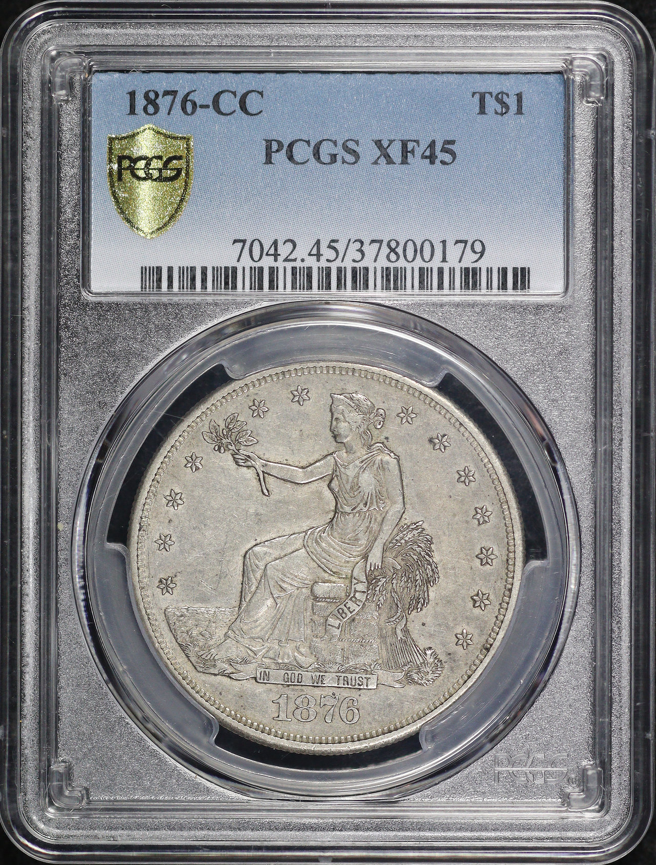 1876-CC Trade Dollar PCGS XF-45 designed by William Barber.