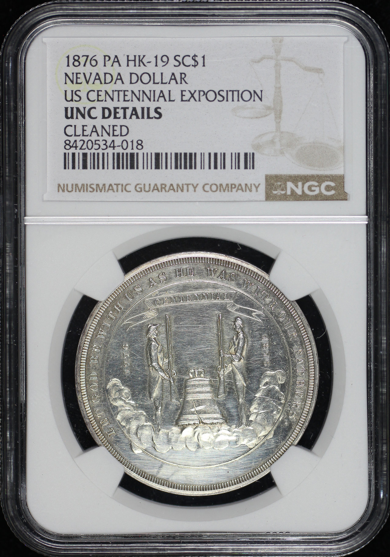 1876 Pa Hk-19 Nevada Dollar US Centennial Exposition SC$1 NGC UNC Details Cleaned.