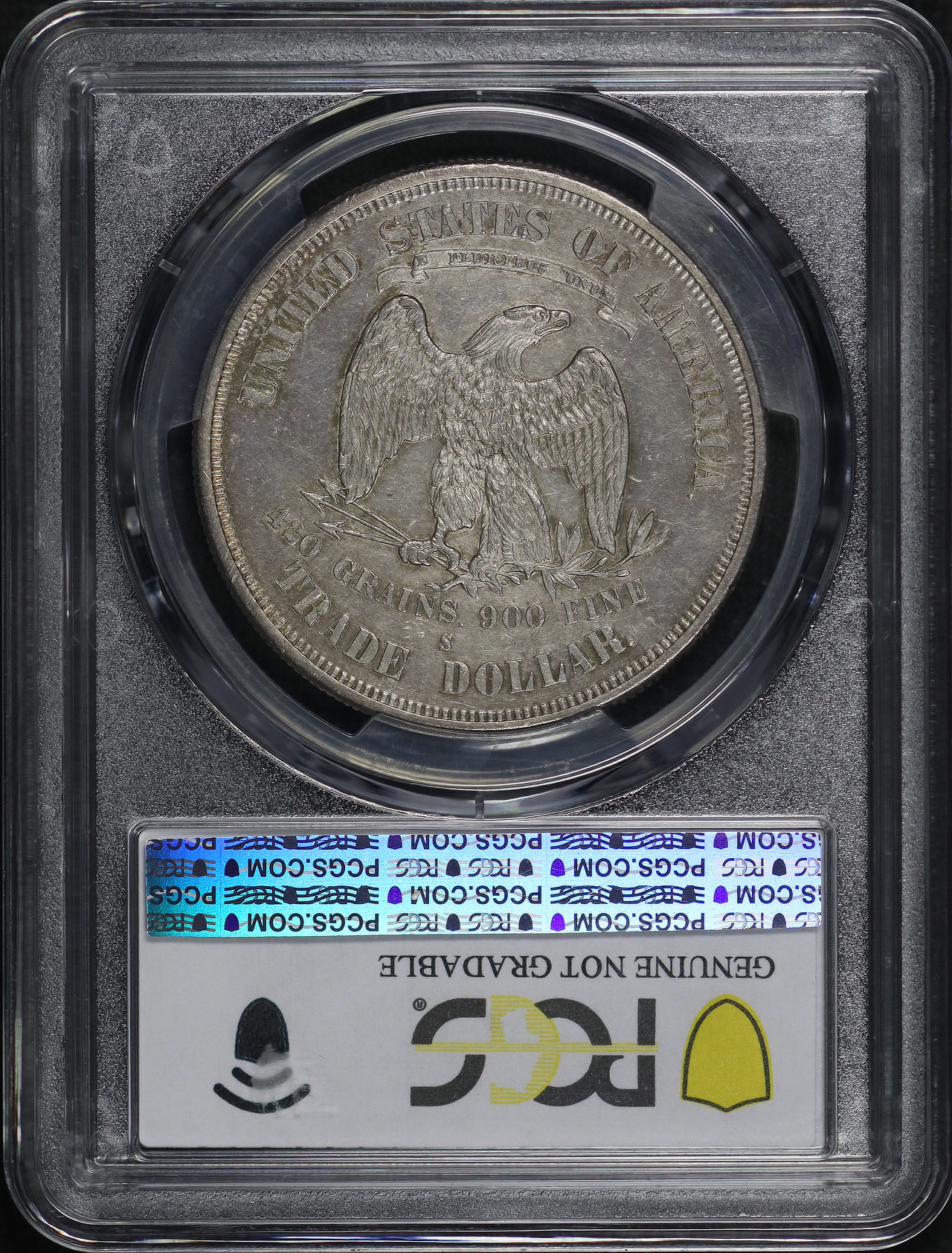 1876-S Trade Dollar PCGS AU Details Cleaned designed by William Barber.