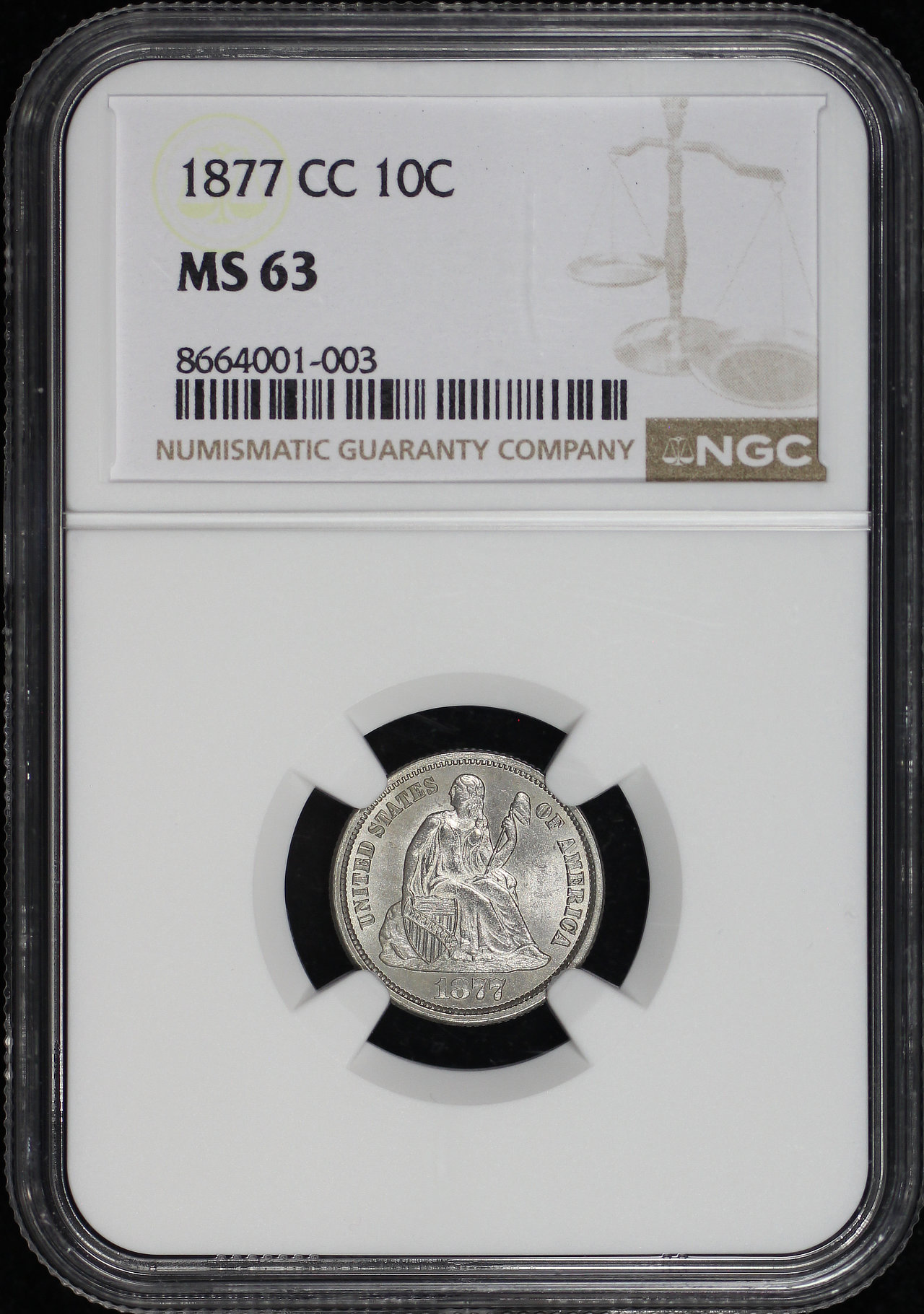 1877-CC Liberty Seated Dime NGC MS-63.