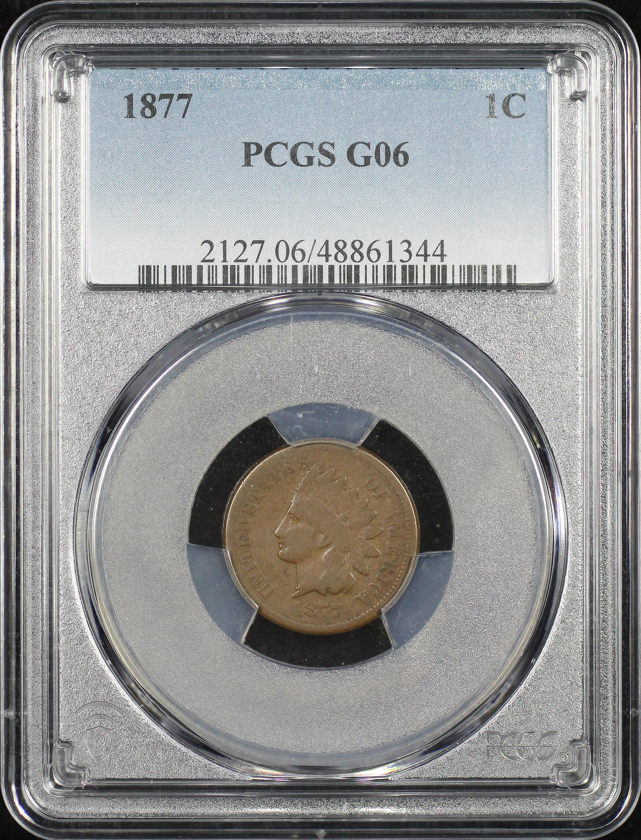 1877 Indian Cent PCGS G-06 BN designed by James Barton Longacre.