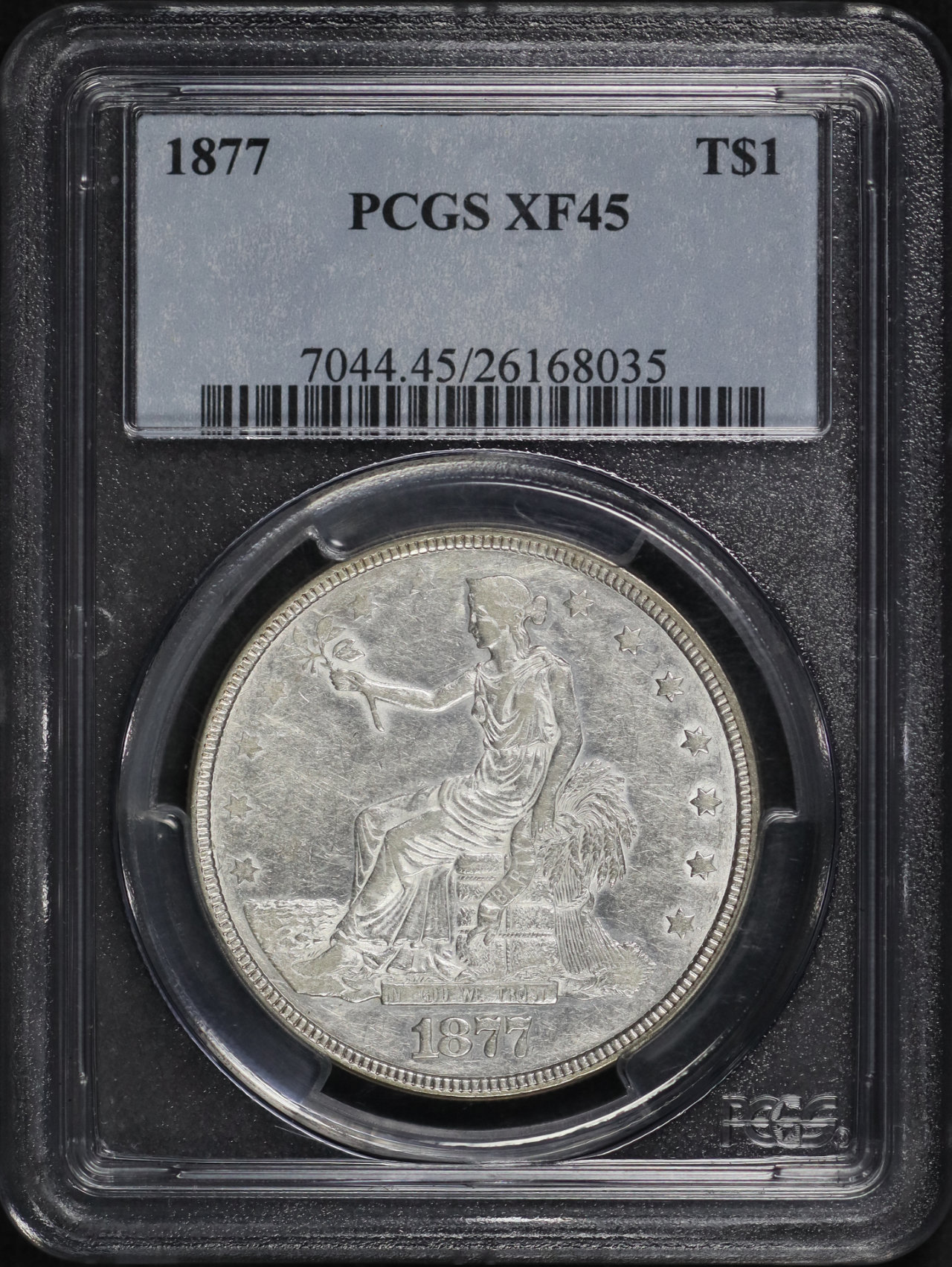 1877 Trade Dollar PCGS XF-45 designed by William Barber.