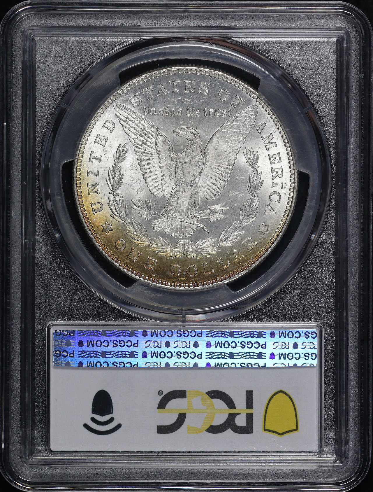 1878 7/8TF Strong Morgan Dollar PCGS MS-63+ designed by George T. Morgan. There is fiery sunset hue toning along the bottom rim with a nice crescent shape!