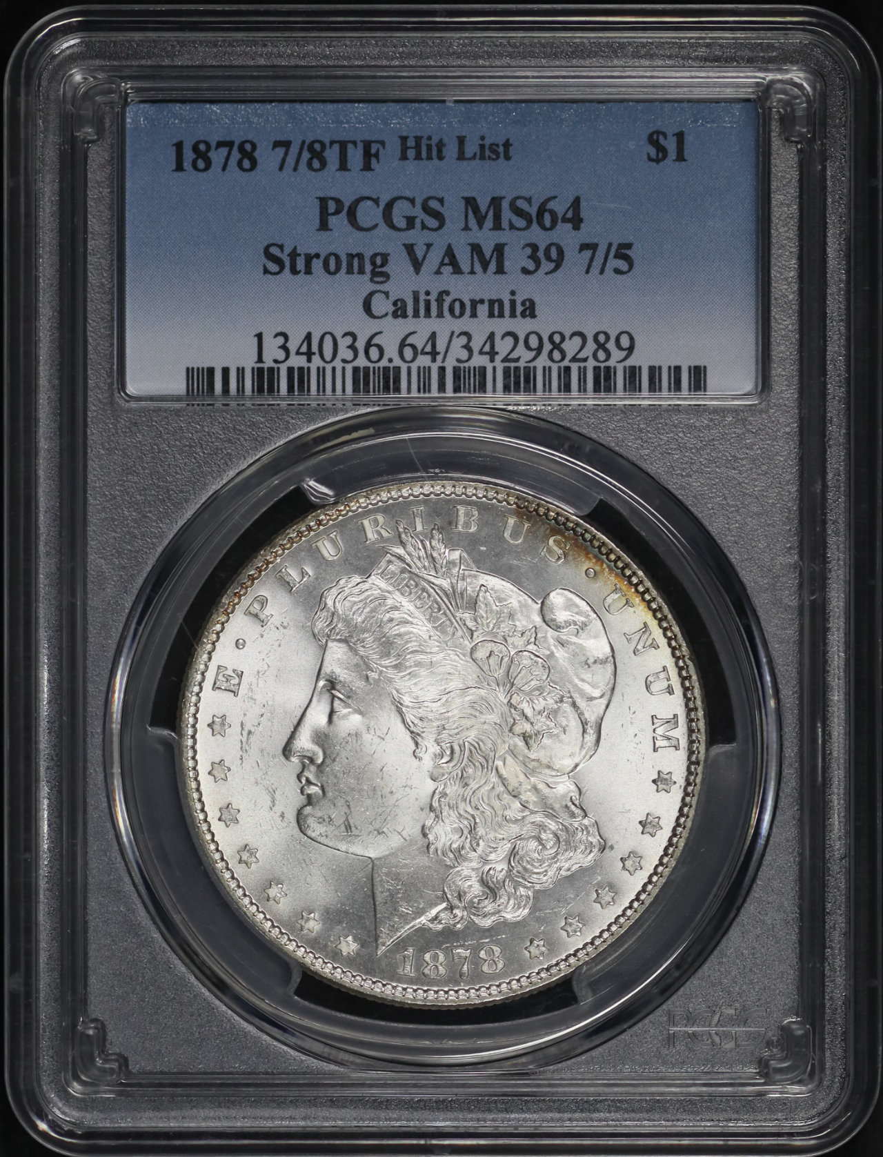 1878 7/8TF Strong Top-100 Morgan Dollar VAM-39 7/5 California PCGS MS-64
