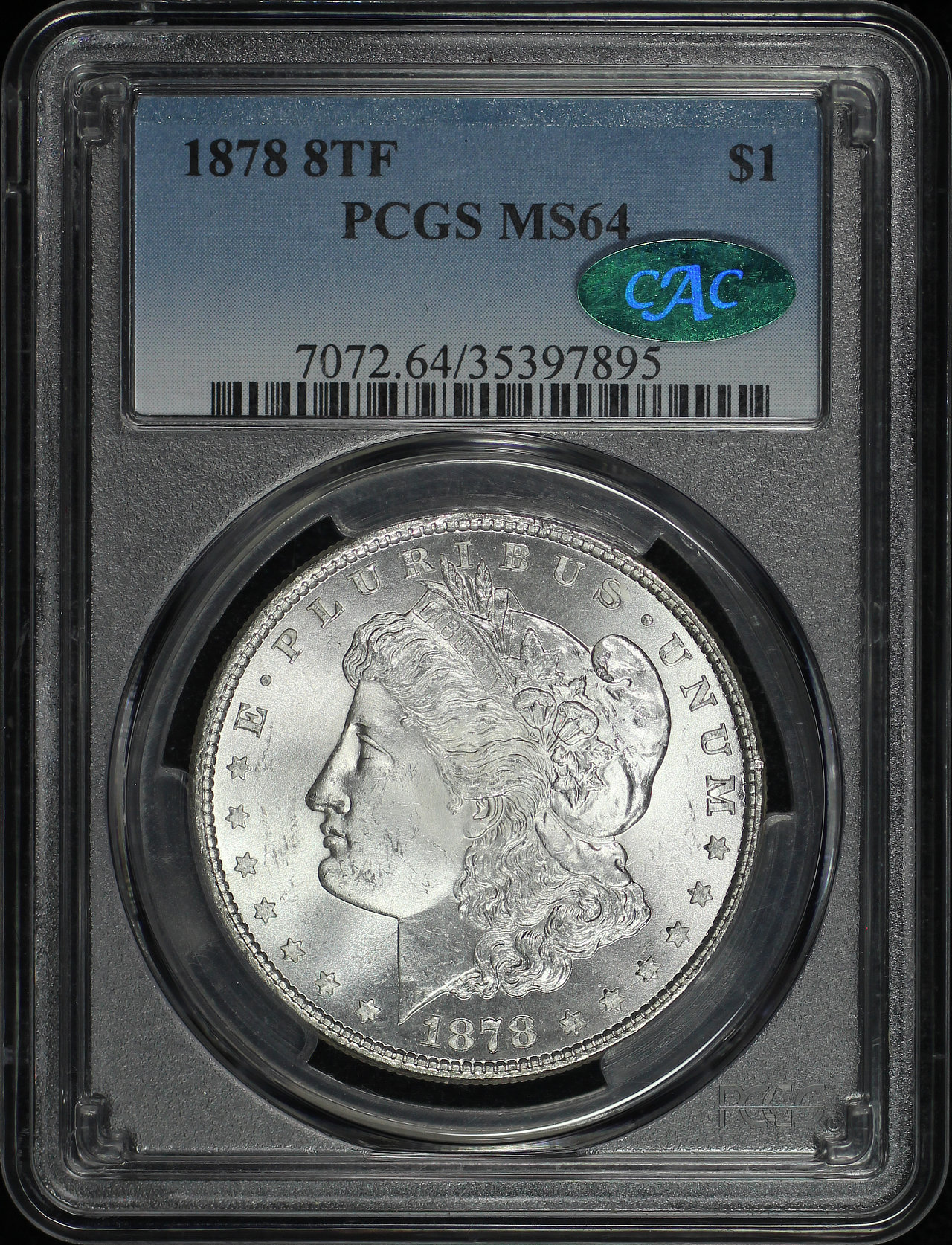 1878 8TF Morgan Dollar PCGS MS-64 CAC designed by George T. Morgan.