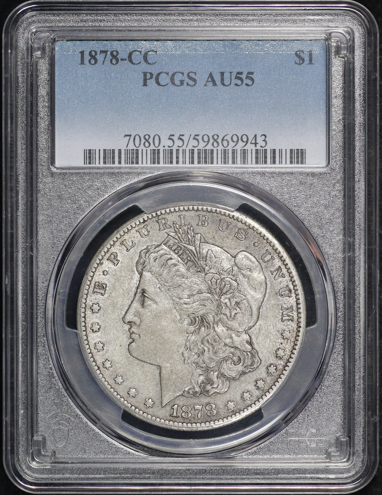 1878-CC Morgan Dollar PCGS AU-55 designed by George T. Morgan.