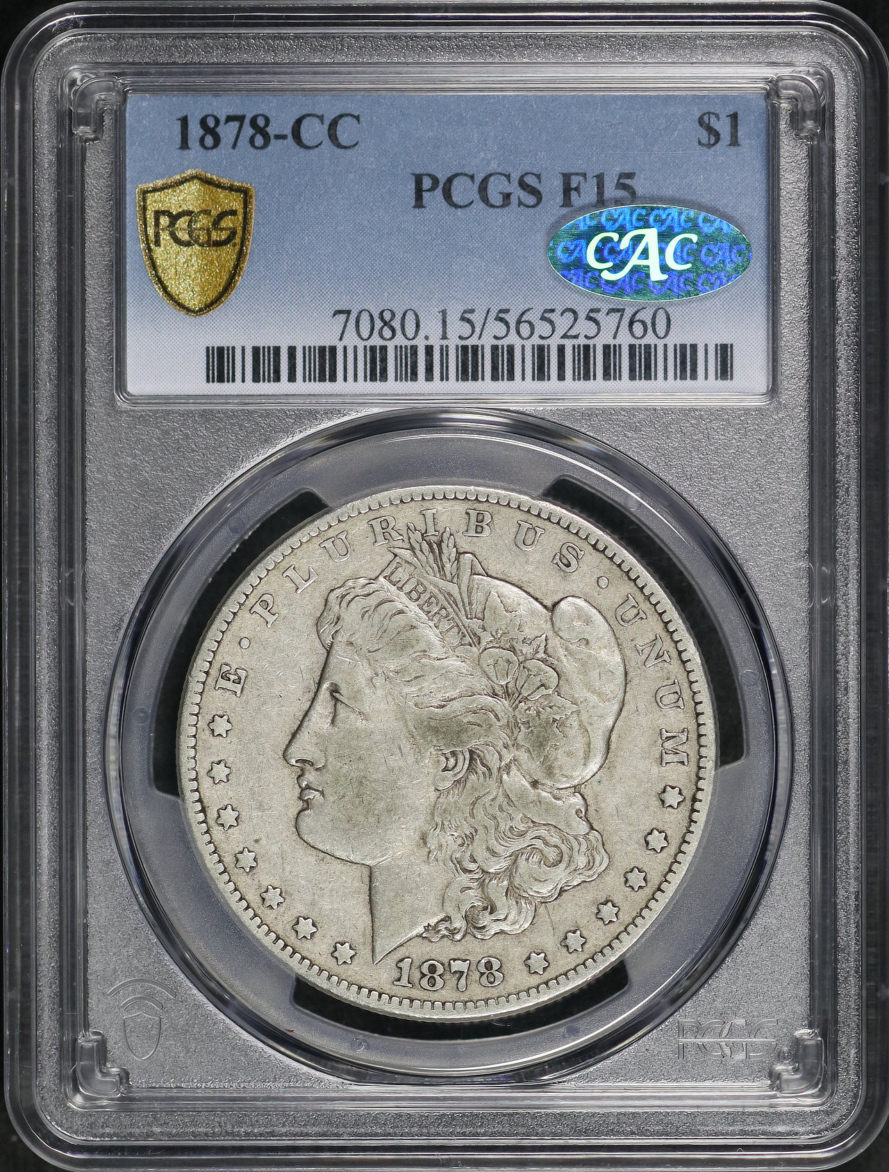 1878-CC Morgan Dollar PCGS F-15 CAC designed by George T. Morgan.