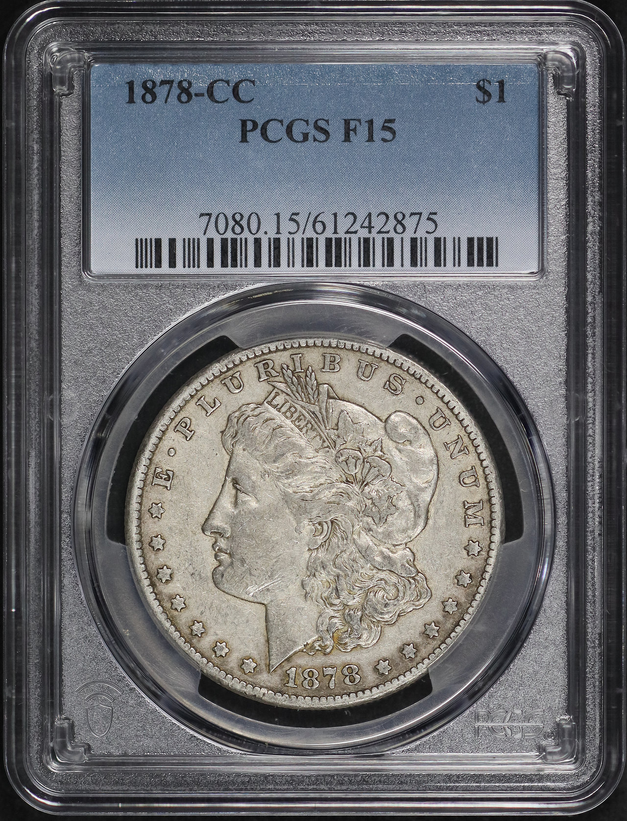 1878-CC Morgan Dollar PCGS F-15 designed by George T. Morgan.