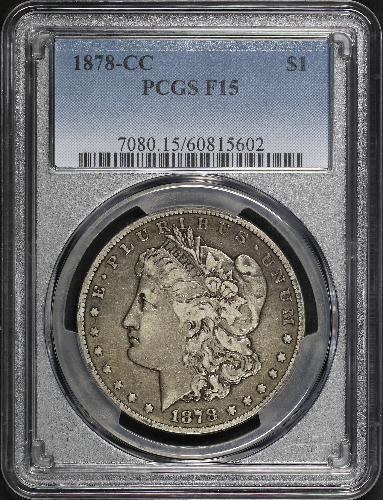 1878-CC Morgan Dollar PCGS F-15 designed by George T. Morgan.