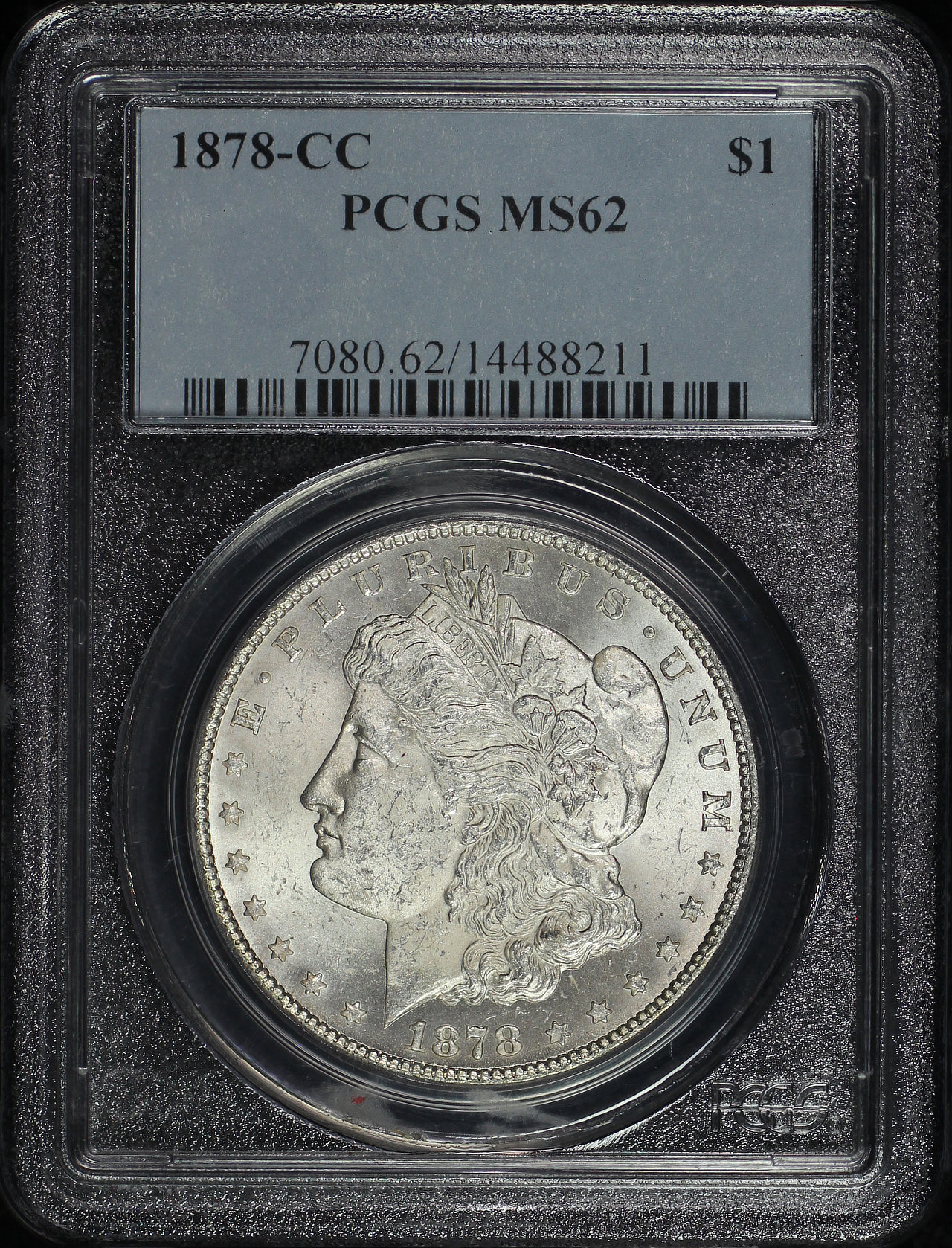 1878-CC Morgan Dollar PCGS MS-62 designed by George T. Morgan.