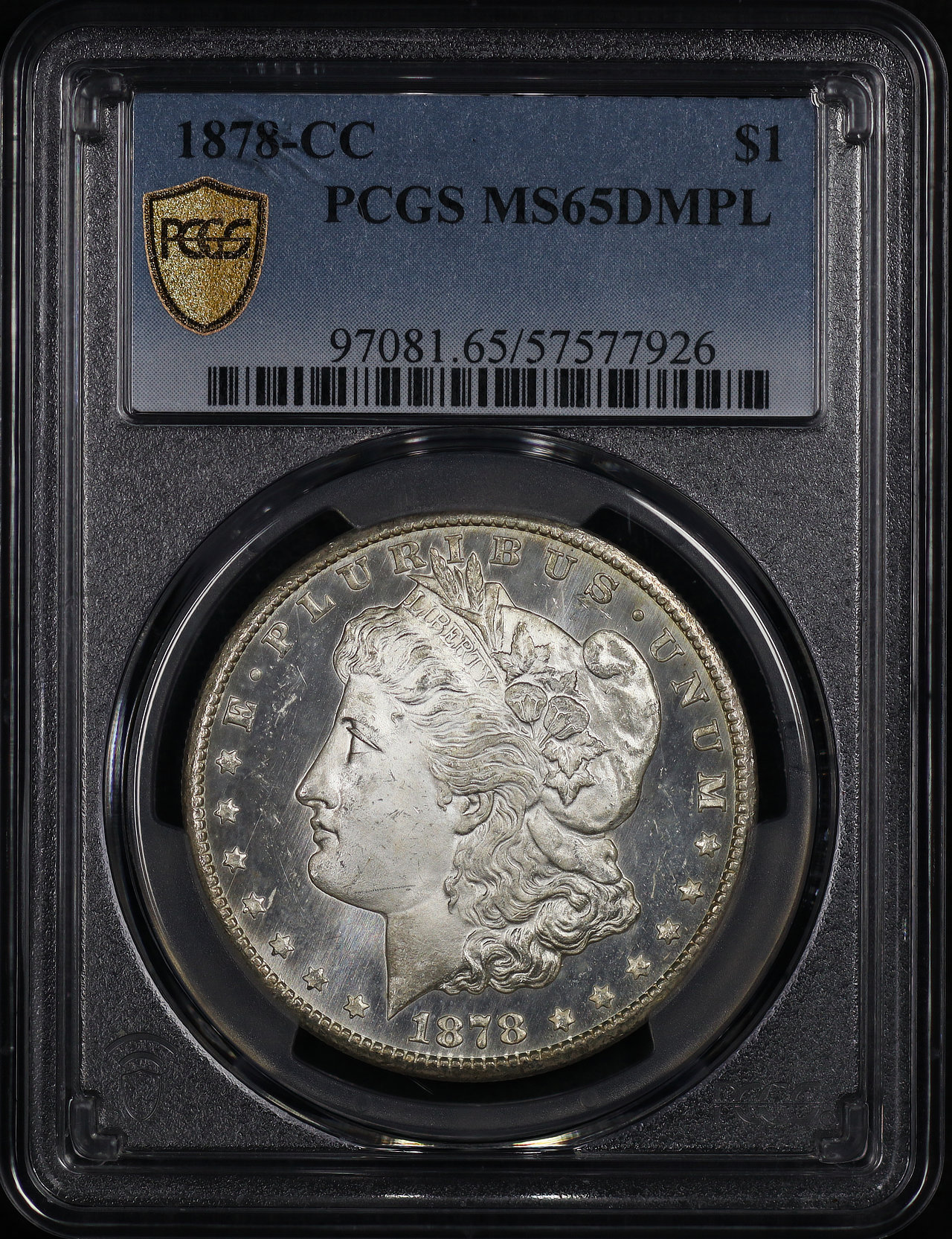 1878-CC Morgan Dollar PCGS MS-65 DMPL designed by George T. Morgan.