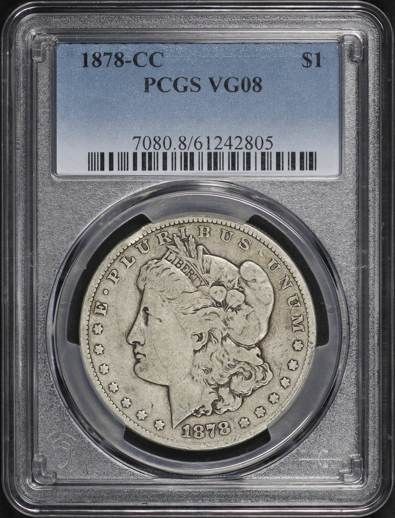 1878-CC Morgan Dollar PCGS VG-08 designed by George T. Morgan.