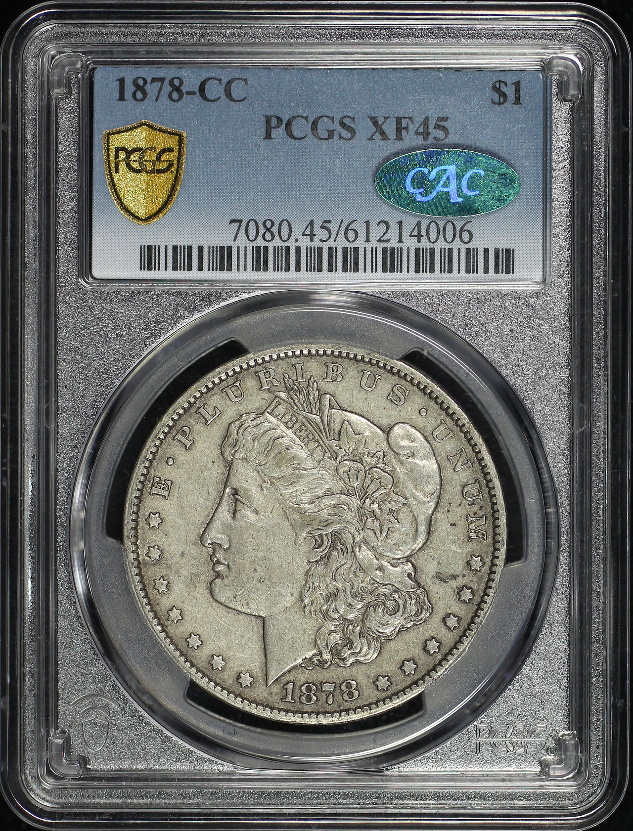 1878-CC Morgan Dollar PCGS XF-45 CAC designed by George T. Morgan.