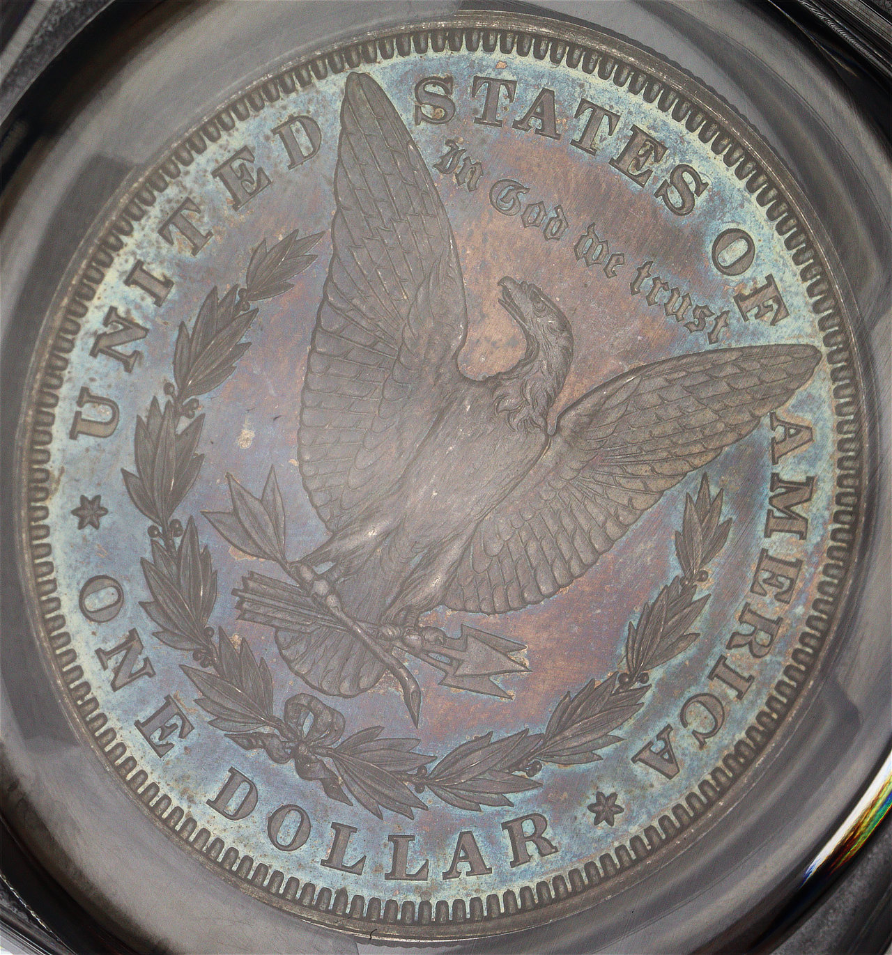1878 J-1550a PCGS PR-64. Both sides display exceptional, vibrant blue toning, with vivid shades of violet scattered throughout!