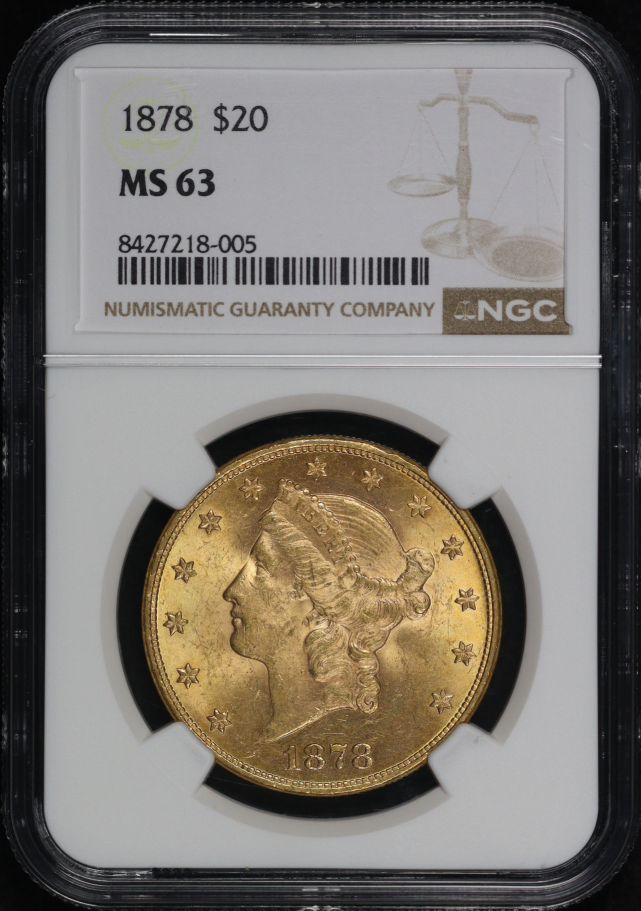 1878 Liberty Head $20 Type 3 NGC MS-63.
