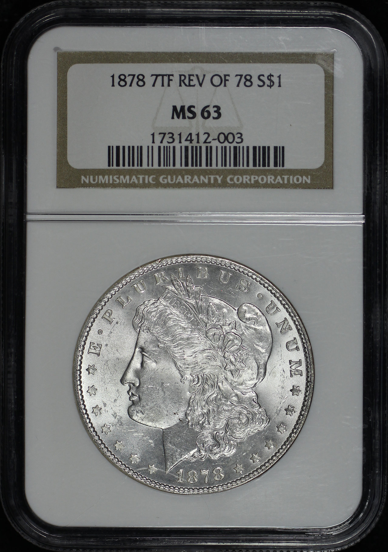 1878 Morgan Dollar 7TF Reverse of 1878 NGC MS-63