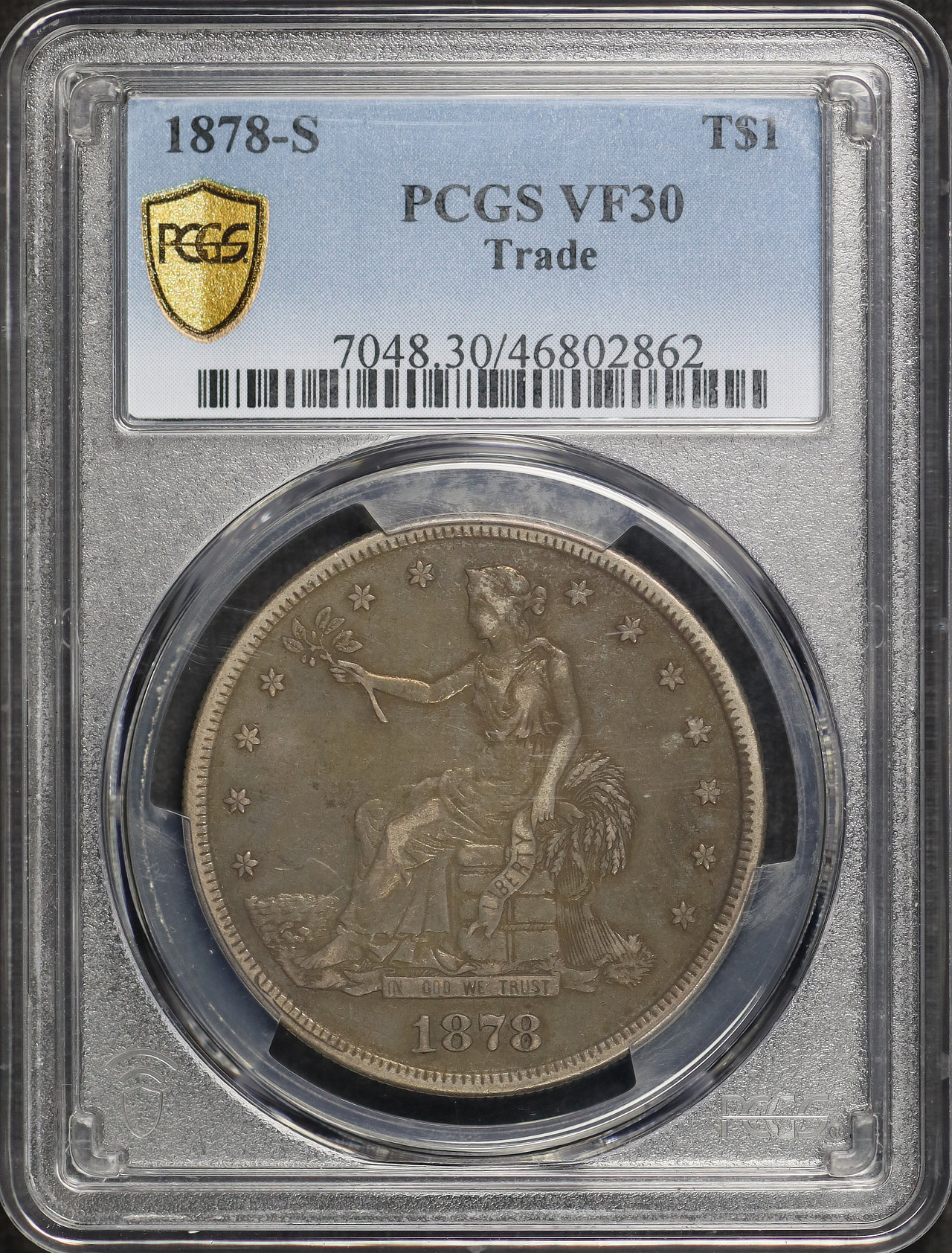 1878-S Trade Dollar PCGS VF-30 designed by William Barber.