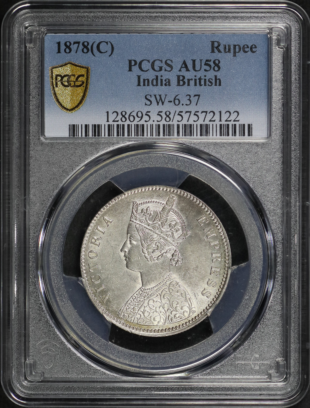 1878(C) India British SW-6.37 Rupee PCGS AU-58
