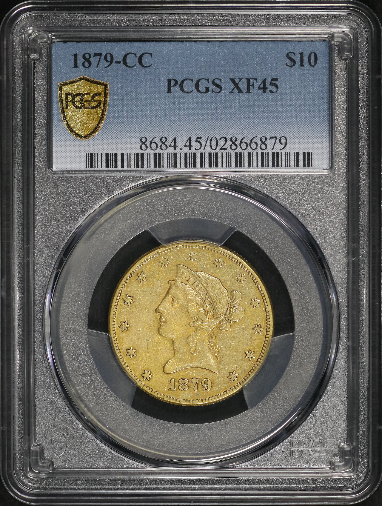 1879-CC Liberty Head $10 PCGS XF-45 designed by Christian Gobrecht.