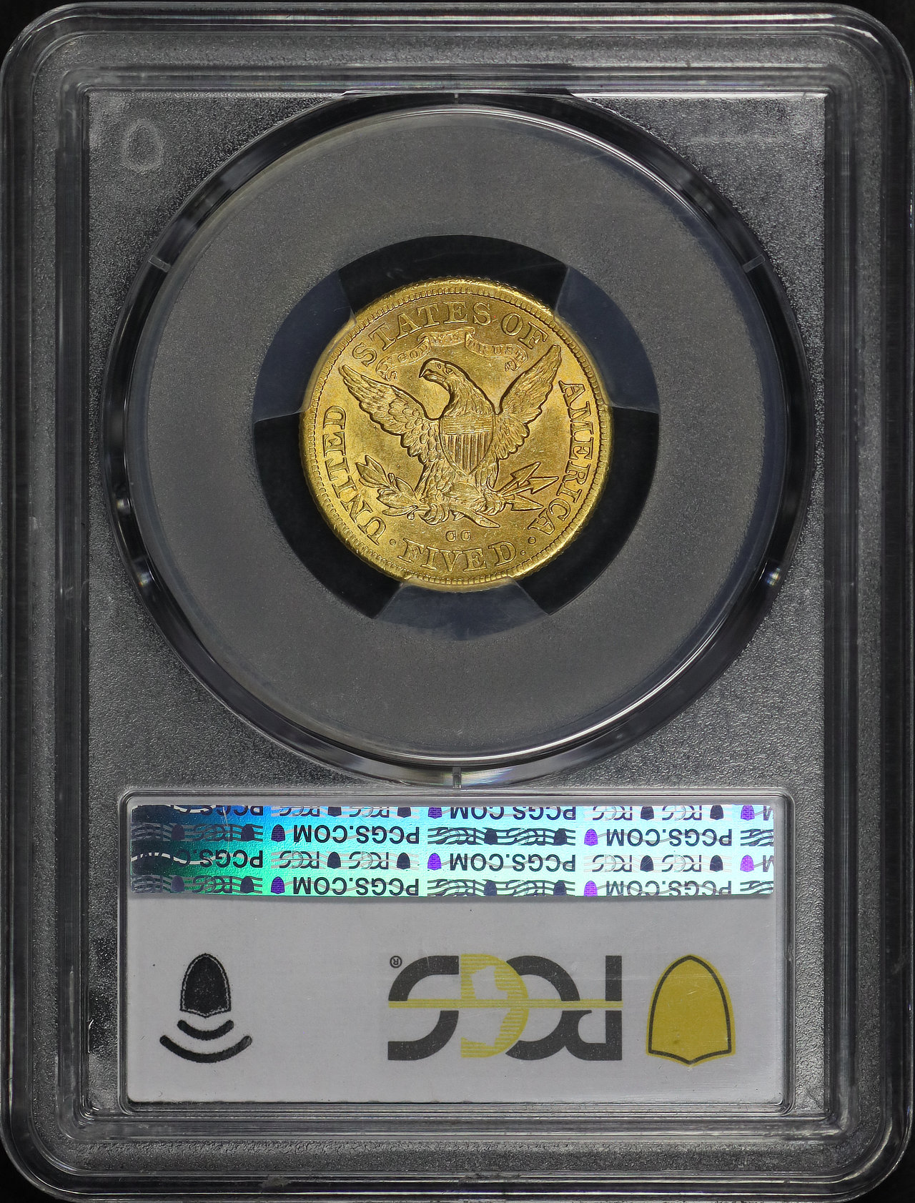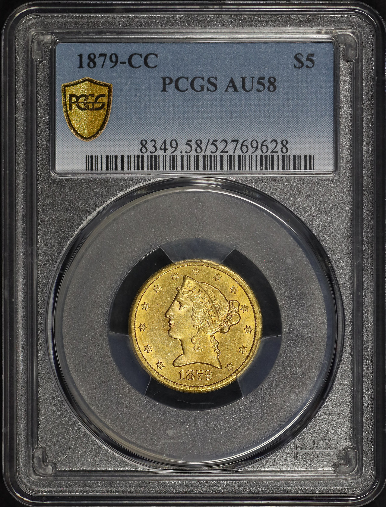 1879-CC Liberty Head $5 PCGS AU-58 designed by Christian Gobrecht.