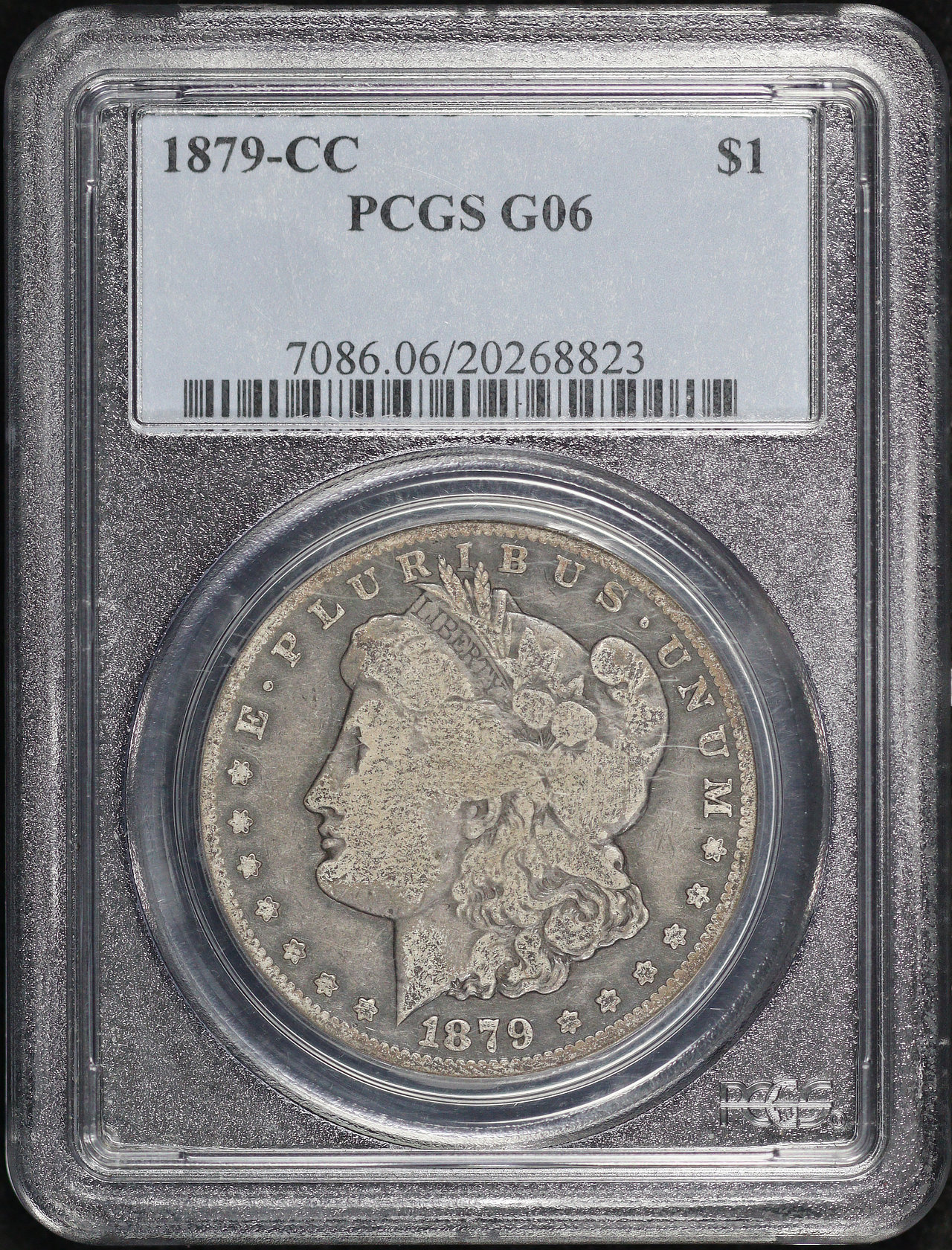 1879-CC Morgan Dollar PCGS G-06 designed by George T. Morgan.