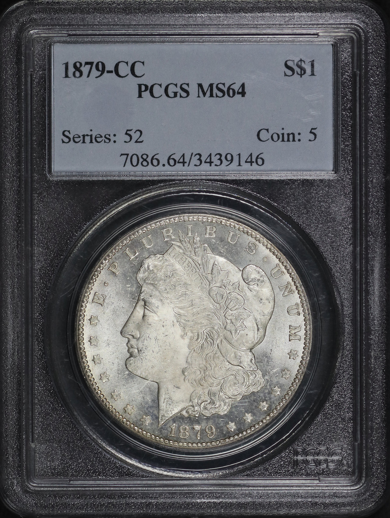 1879-CC Morgan Dollar PCGS MS-64 designed by George T. Morgan.