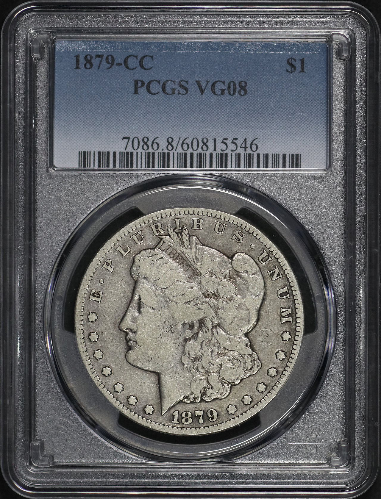 1879-CC Morgan Dollar PCGS VG-08 designed by George T. Morgan.