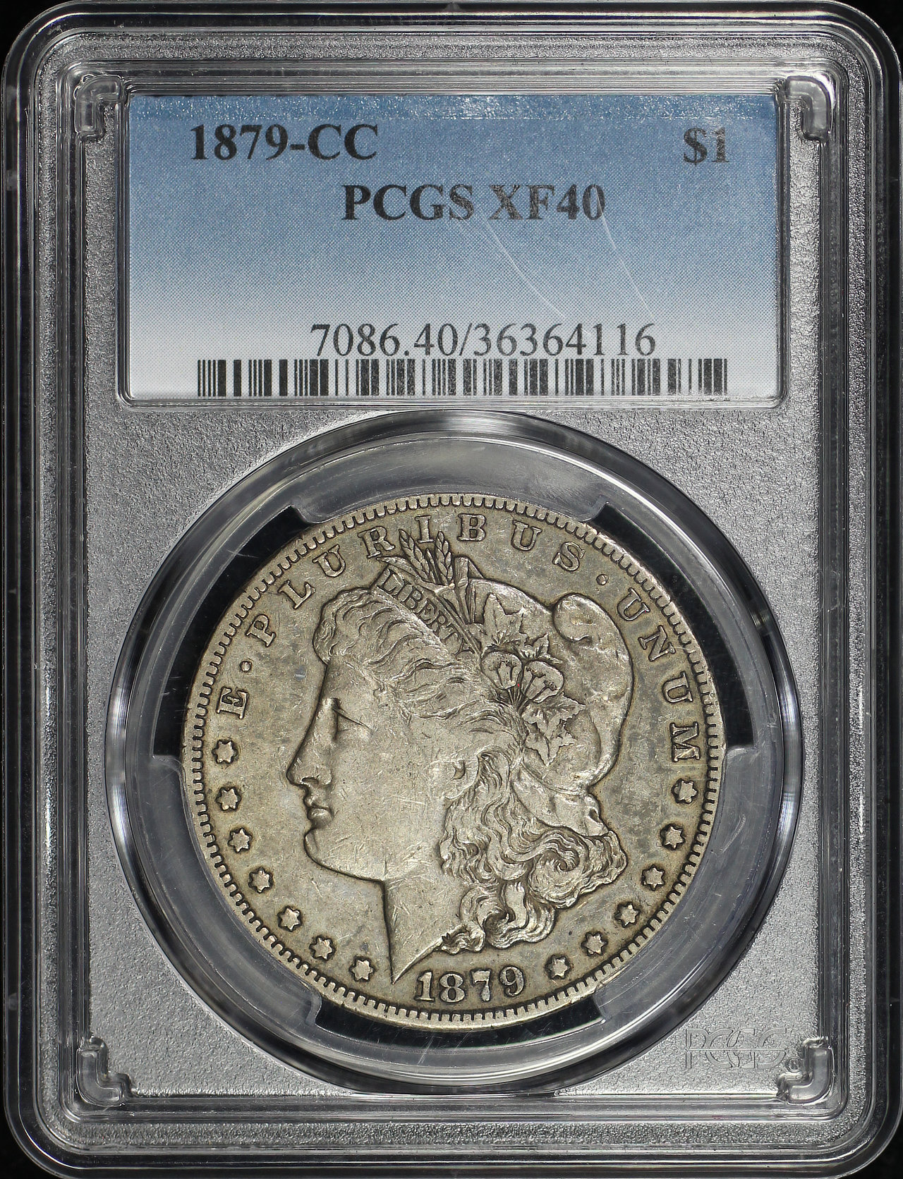 1879-CC Morgan Dollar PCGS XF-40 designed by George T. Morgan.