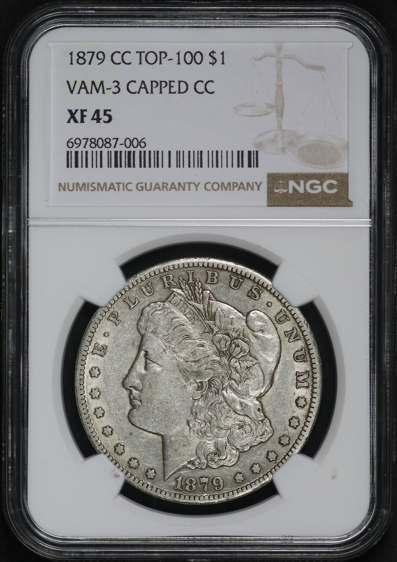 1879-CC Top-100 Morgan Dollar VAM-3 Capped Die NGC XF-45