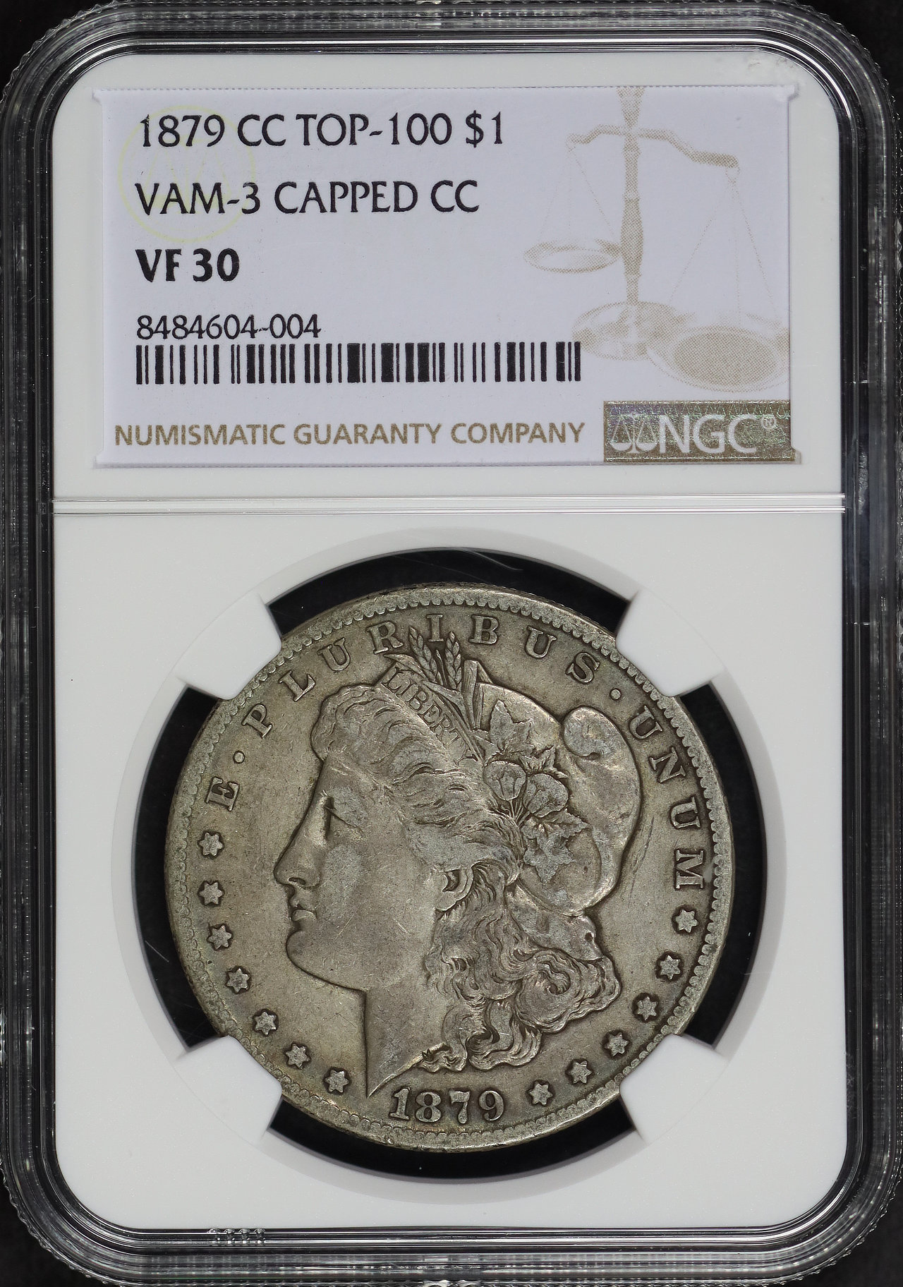 1879-CC Top-100 Morgan Dollar VAM-3 Capped Die NGC VF-30.