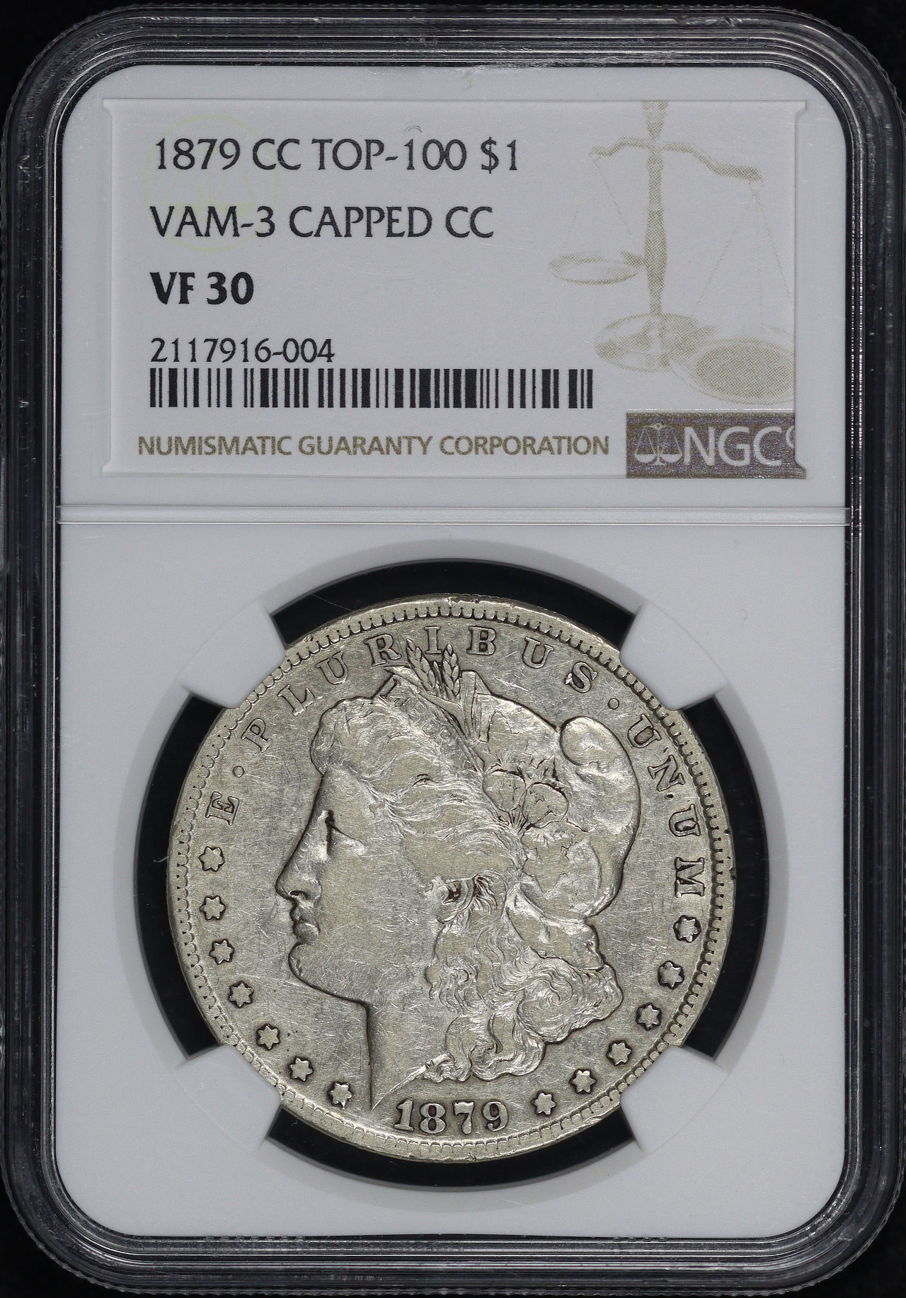 1879-CC Top-100 VAM-3 Capped Die Morgan Dollar NGC VF-30.