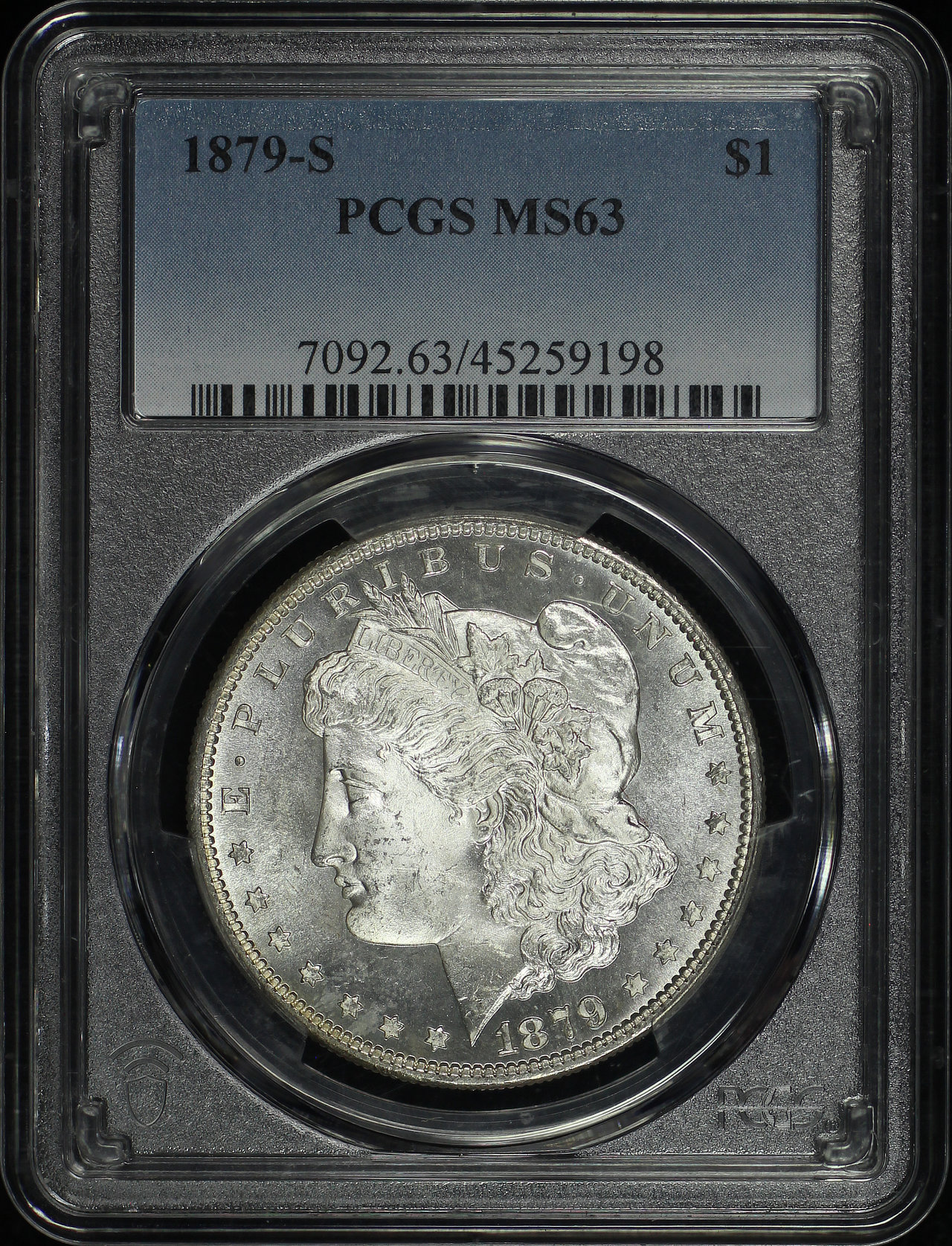 1879-S Morgan Dollar PCGS MS-63 designed by George T. Morgan.