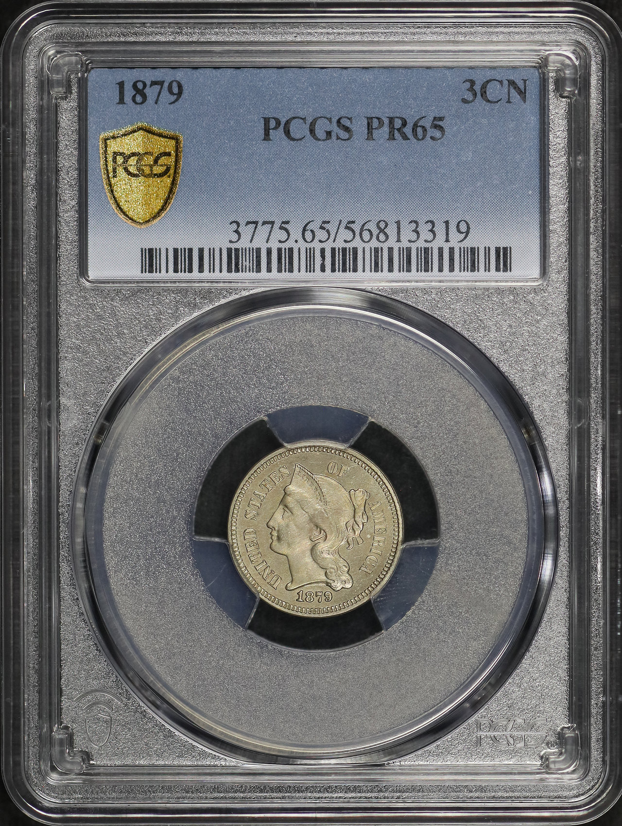 1879 Three Cent Nickel PCGS PR-65 designed by James Barton Longacre.