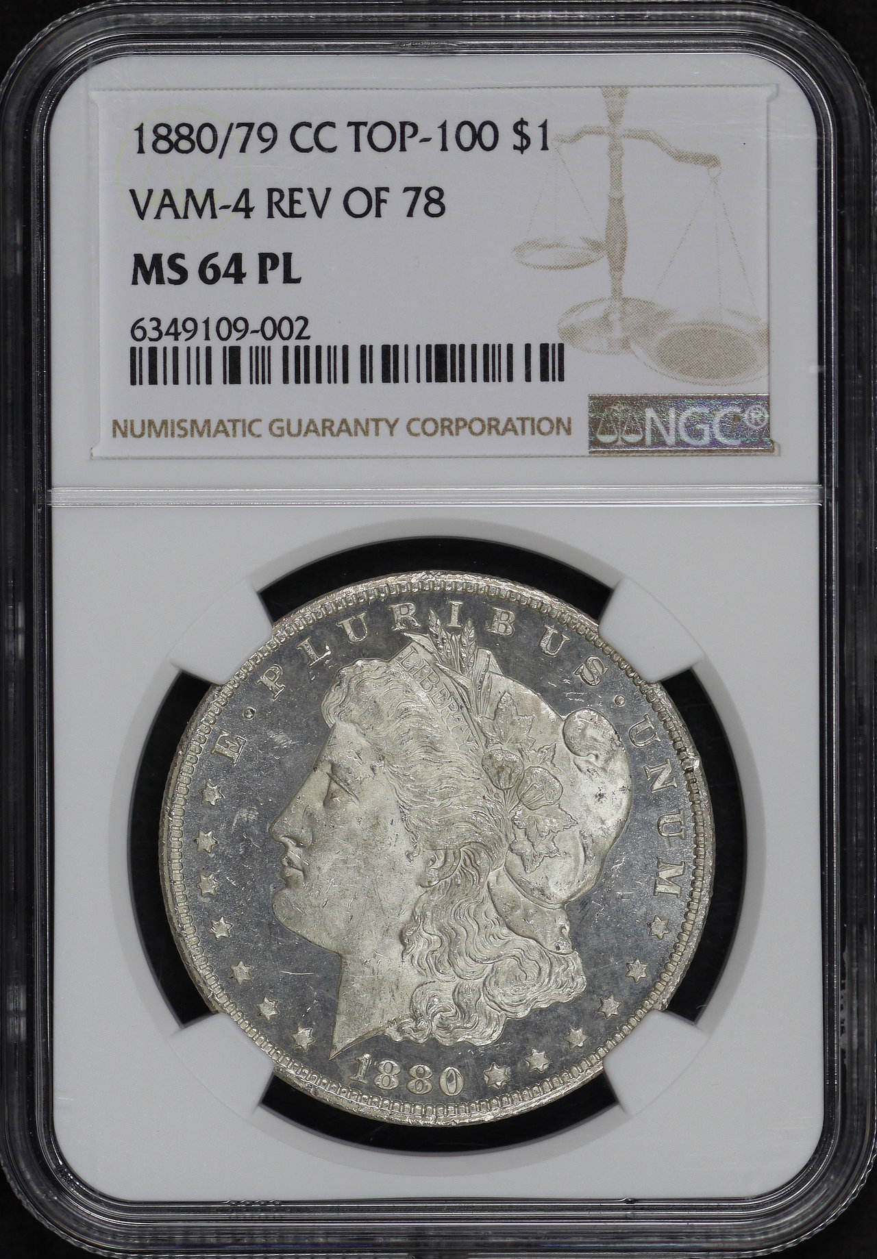 1880/79-CC Top-100 VAM-4 Reverse of 1878 Morgan Dollar NGC MS-64 PL