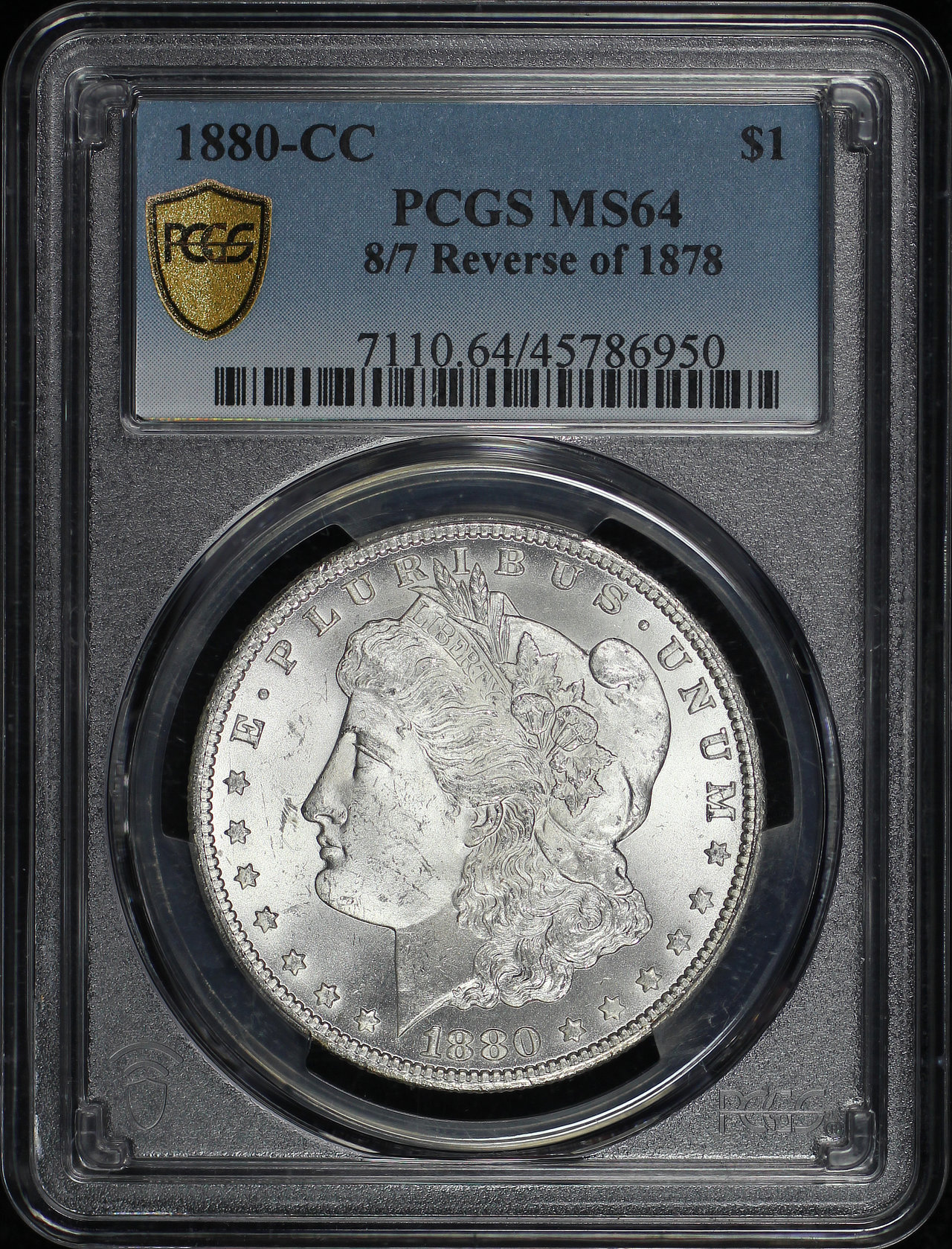 1880-CC Morgan Dollar 8/7 Reverse of 1878 PCGS MS-64