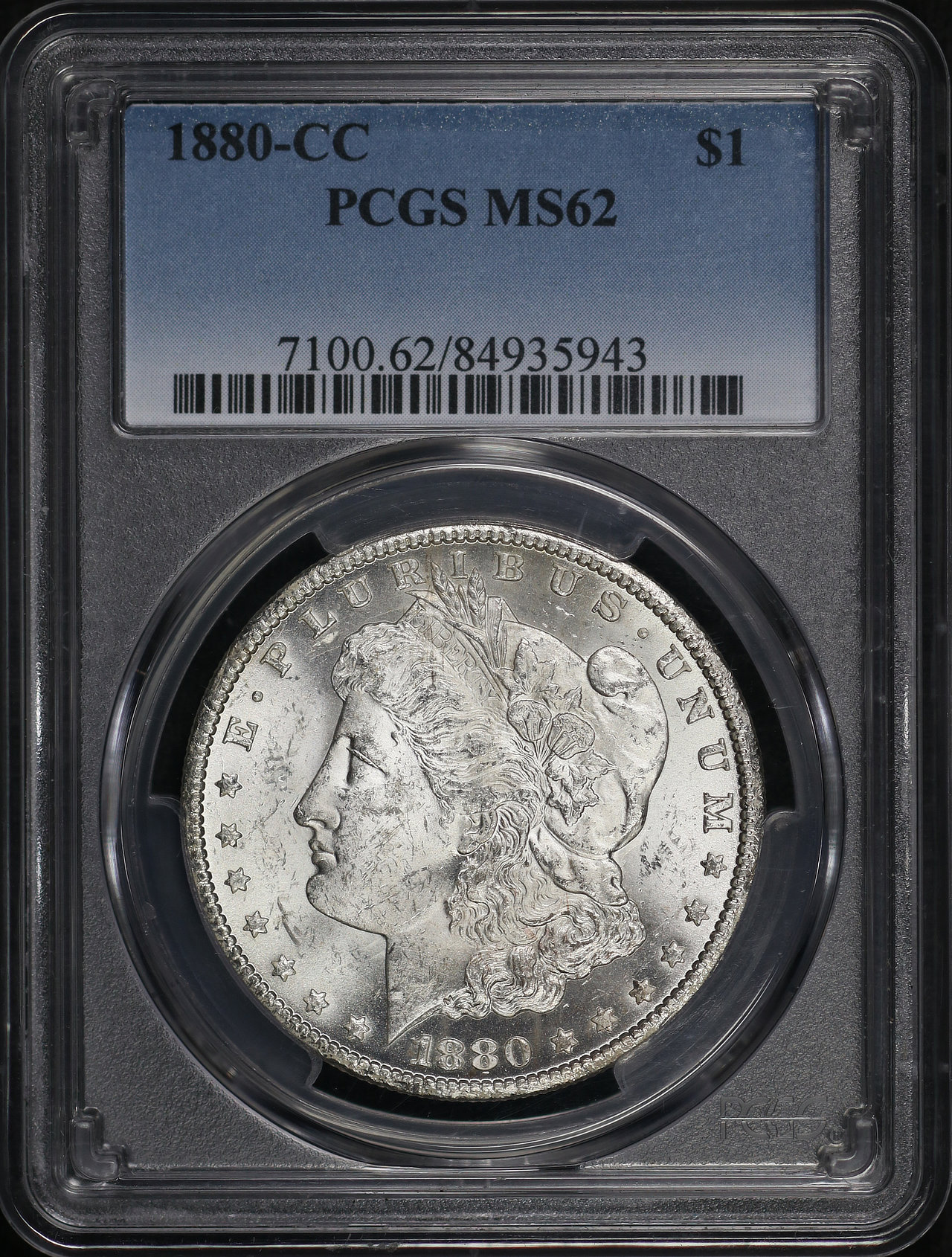 1880-CC Morgan Dollar PCGS MS-62 designed by George T. Morgan.