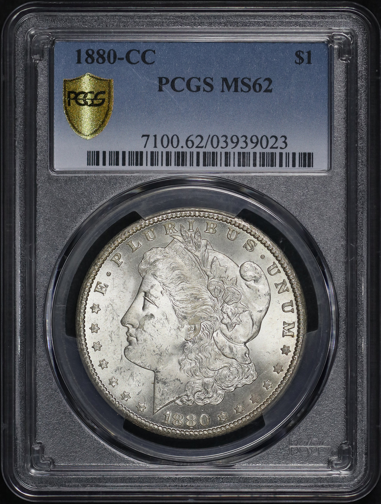 1880-CC Morgan Dollar PCGS MS-62 designed by George T. Morgan.