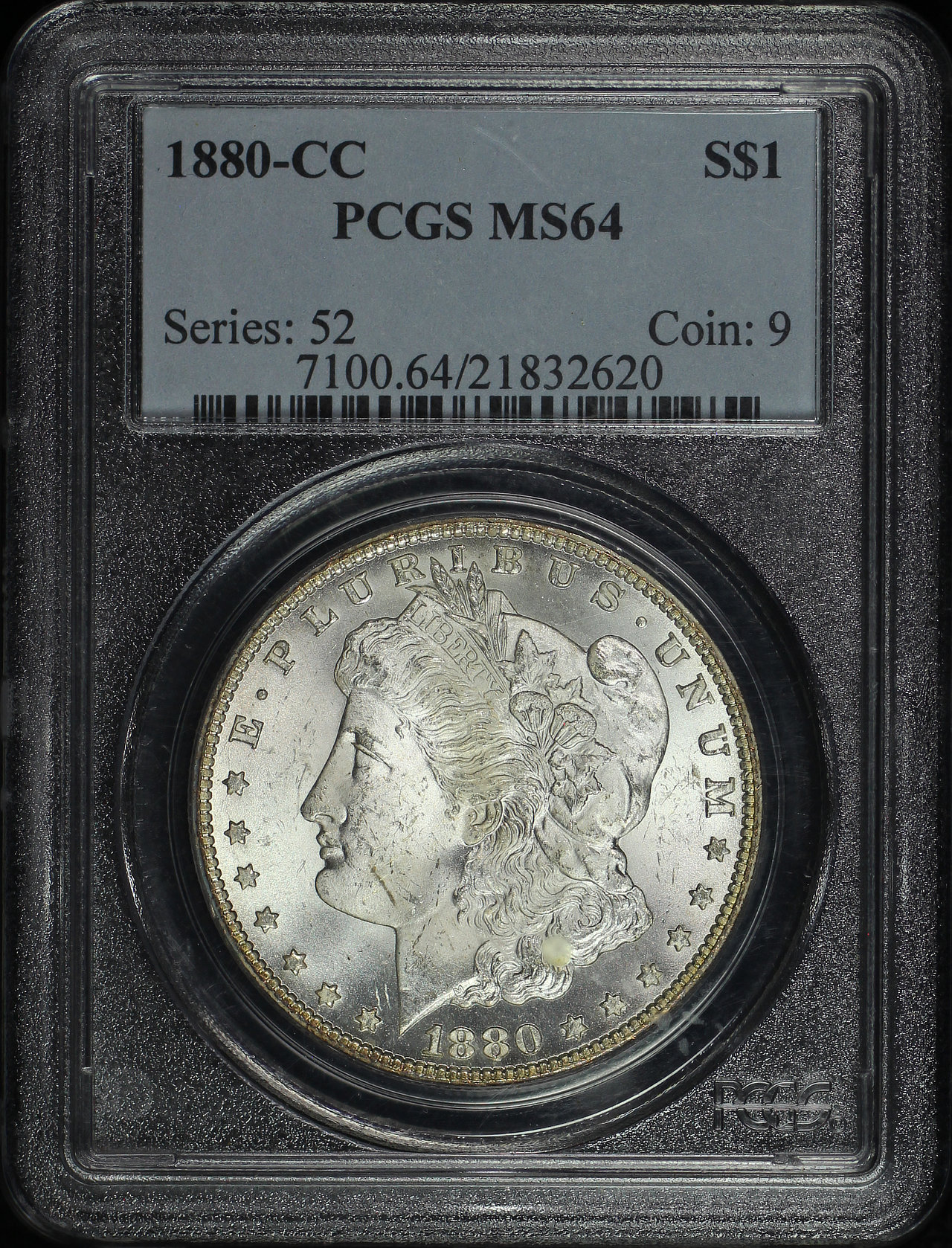1880-CC Morgan Dollar PCGS MS-64 designed by George T. Morgan.