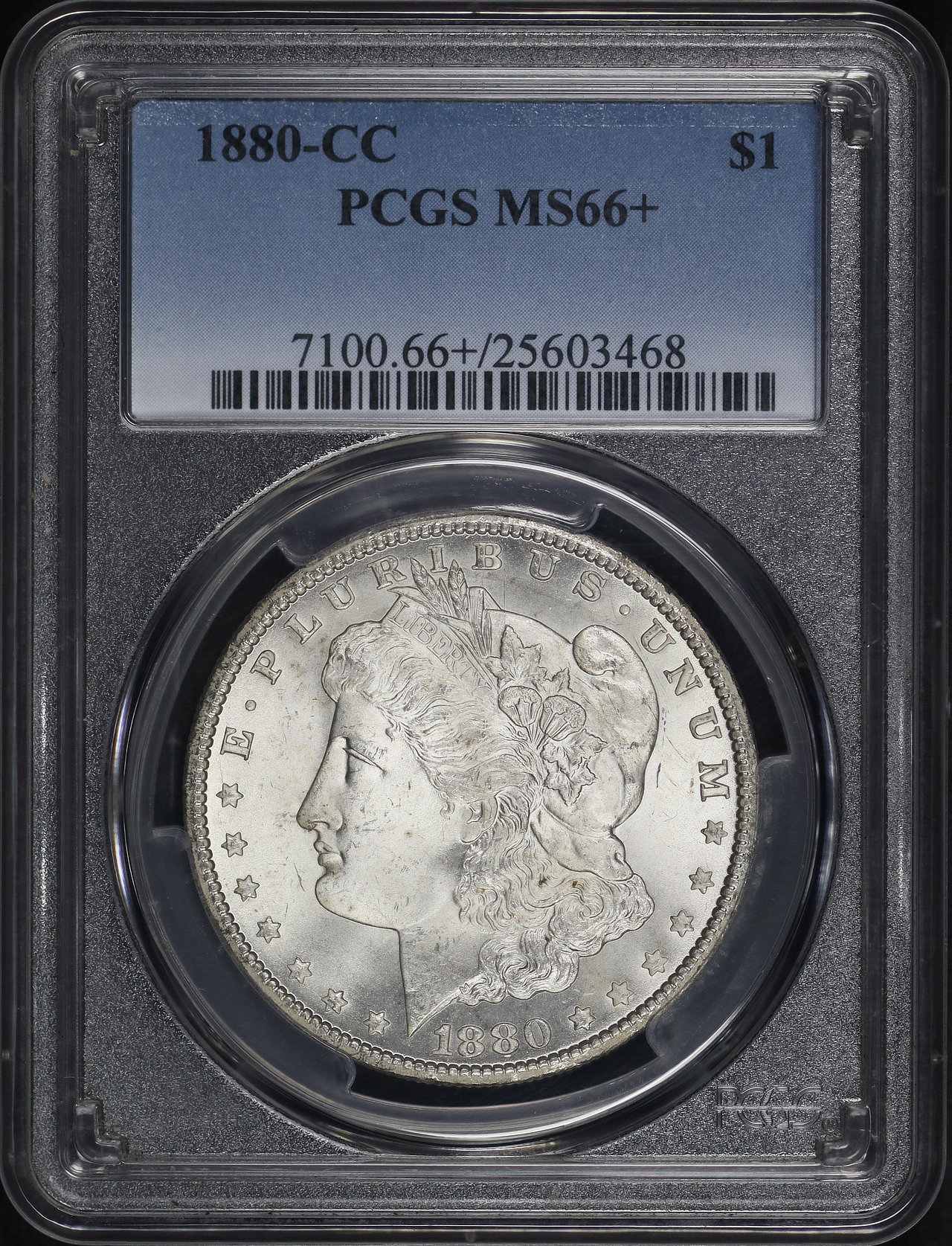 1880-CC Morgan Dollar PCGS MS-66+ designed by George T. Morgan.