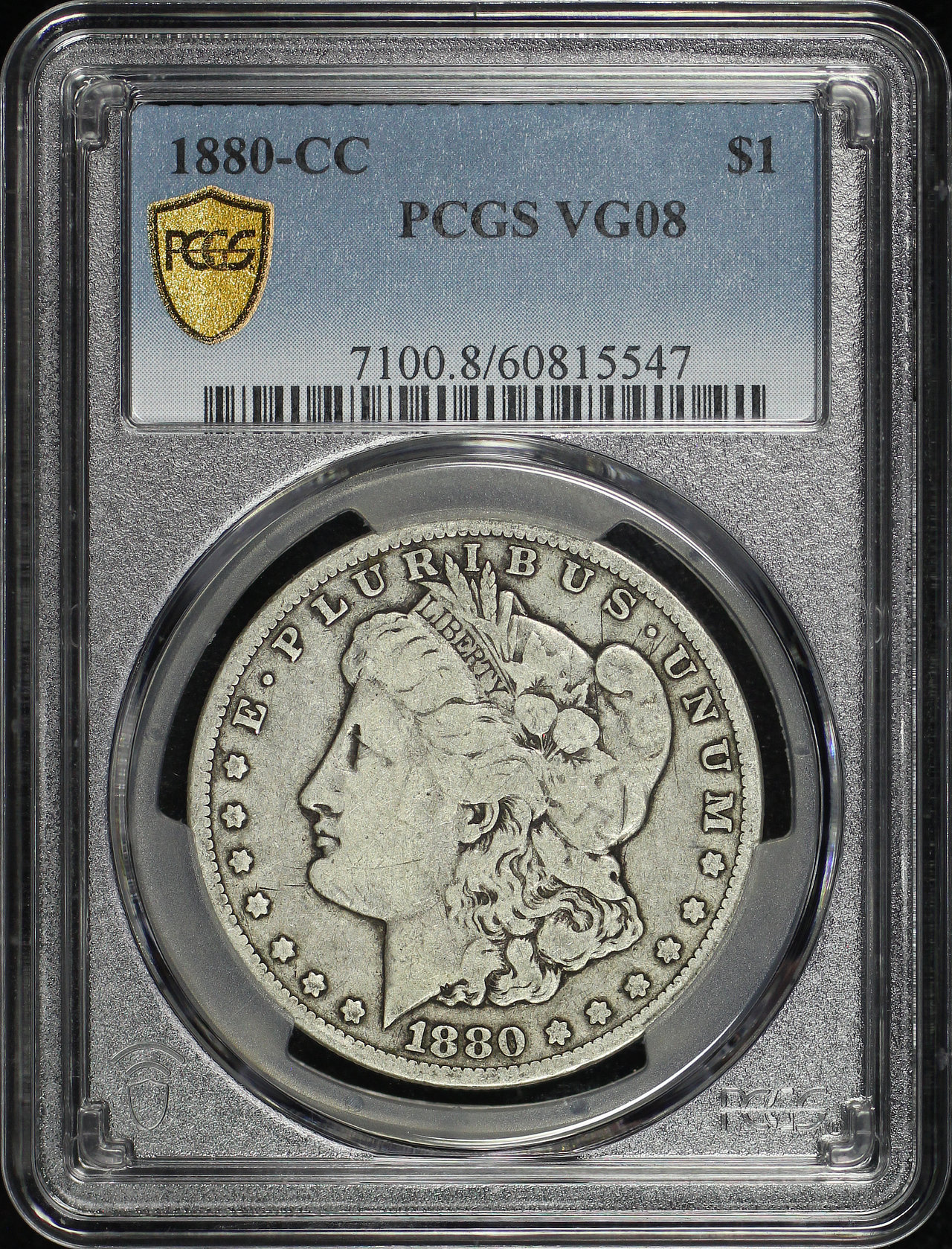 1880-CC Morgan Dollar PCGS VG-08 designed by George T. Morgan.
