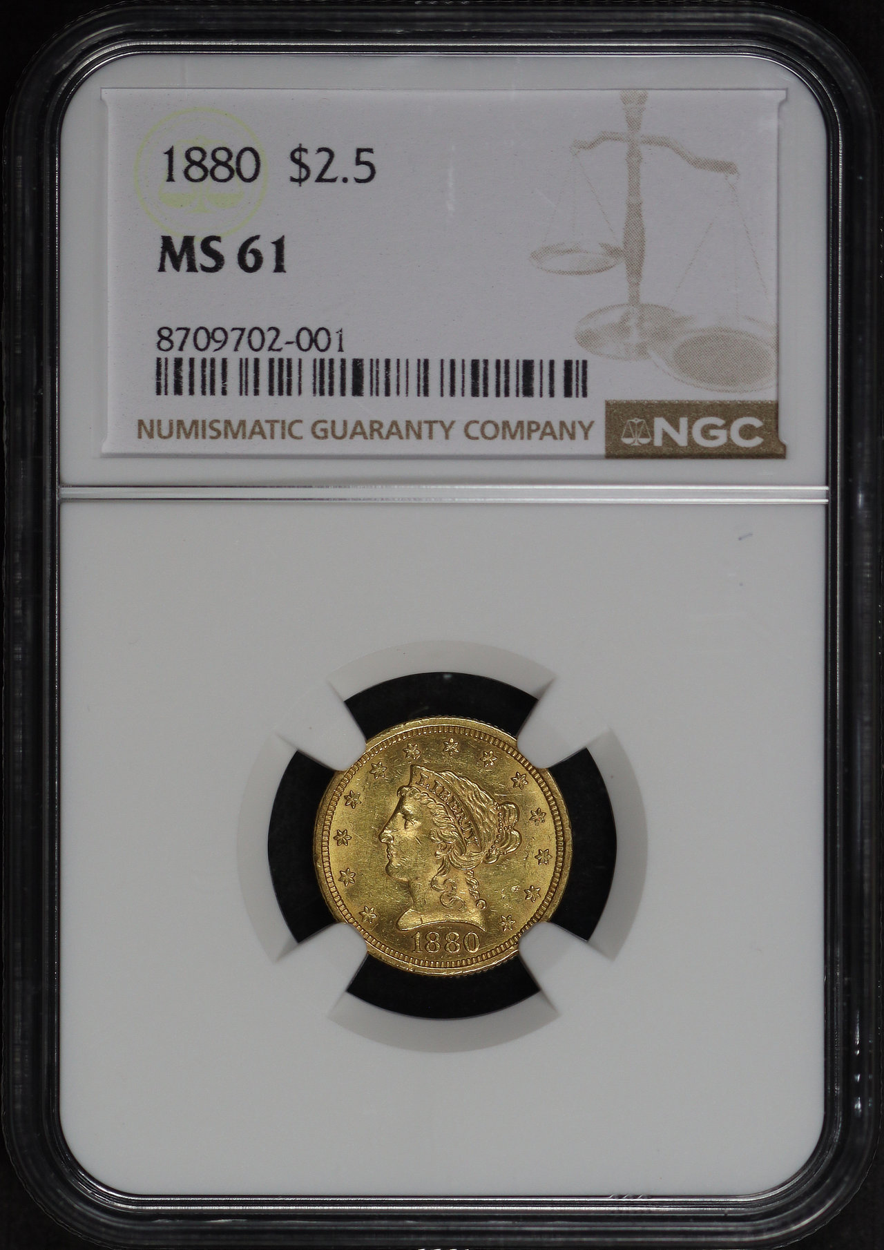 1880 Liberty Head $2.5 NGC MS-61.