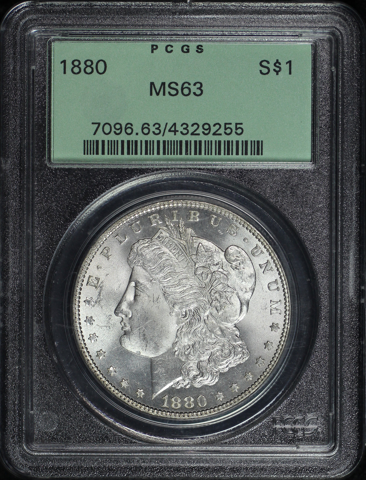 1880 Morgan Dollar PCGS MS-63 Old Green Holder designed by George T. Morgan.