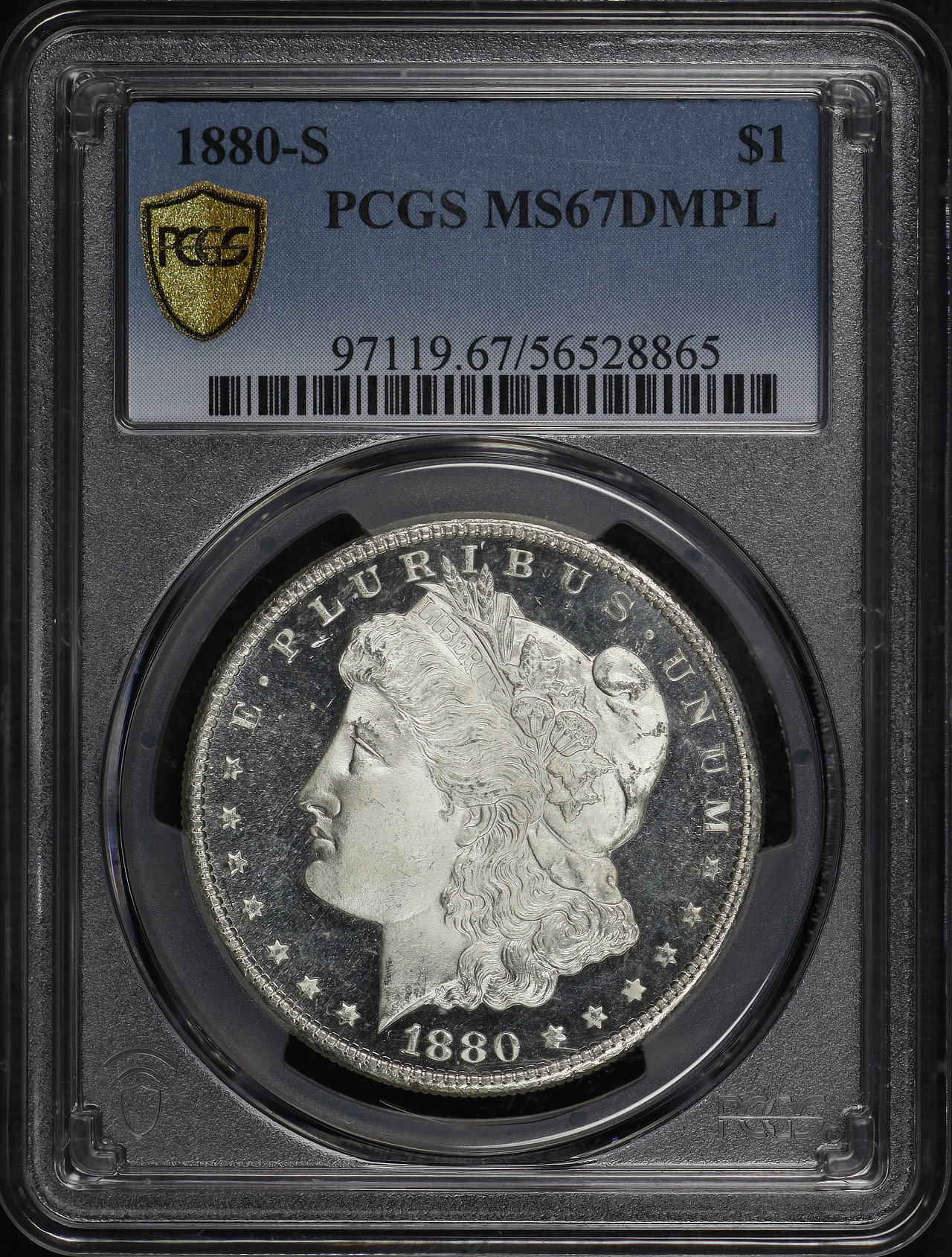 1880-S Morgan Dollar PCGS MS-67 DMPL designed by George T. Morgan.