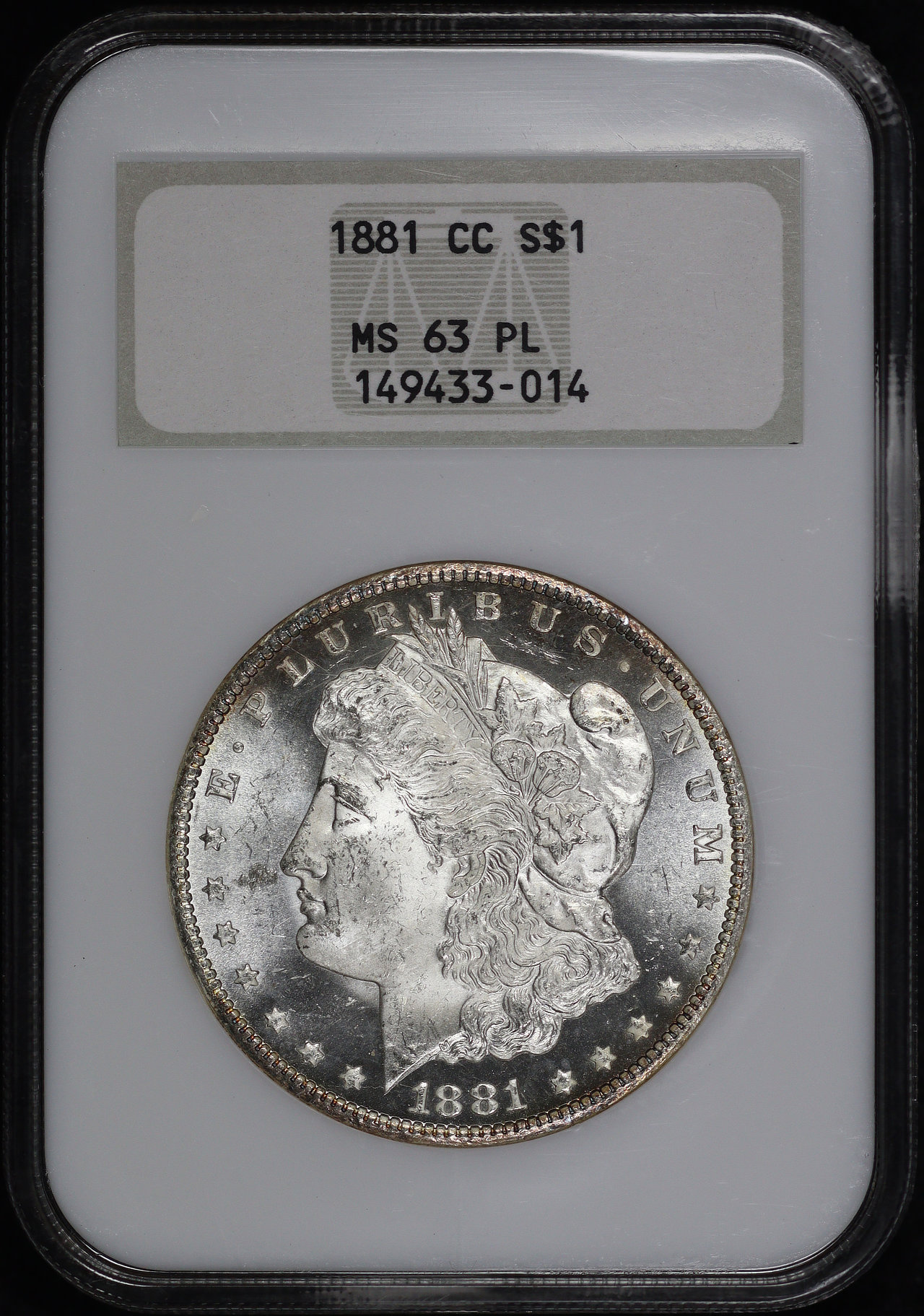 1881-CC Morgan Dollar NGC MS-63 PL Old Fatty Holder, Full Hologram.