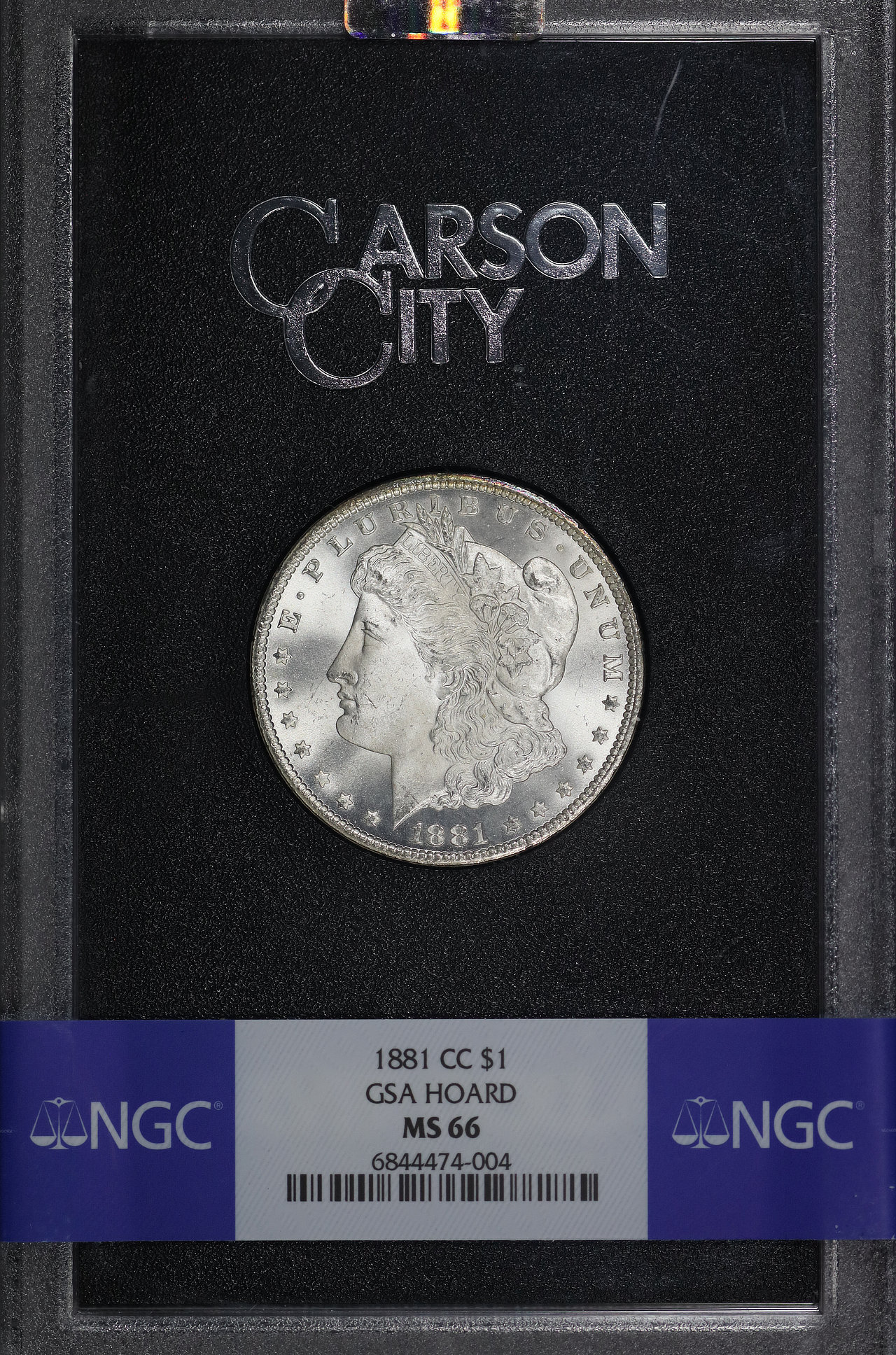 1881-CC Morgan Dollar GSA Hoard NGC MS-66 GSA Hard Pack With Box designed by George T. Morgan.