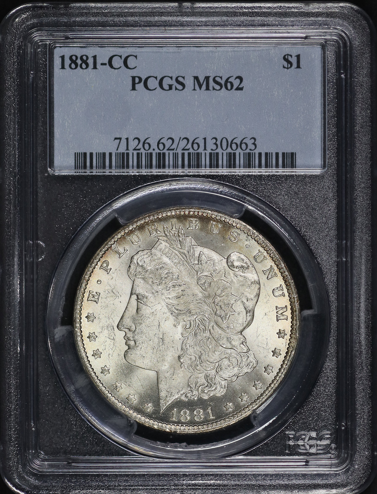 1881-CC Morgan Dollar PCGS MS-62 designed by George T. Morgan.